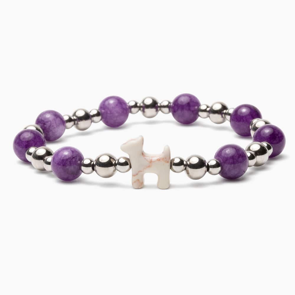 STRĀ Dog Beaded Bracelet – Silver & Purple Crystal