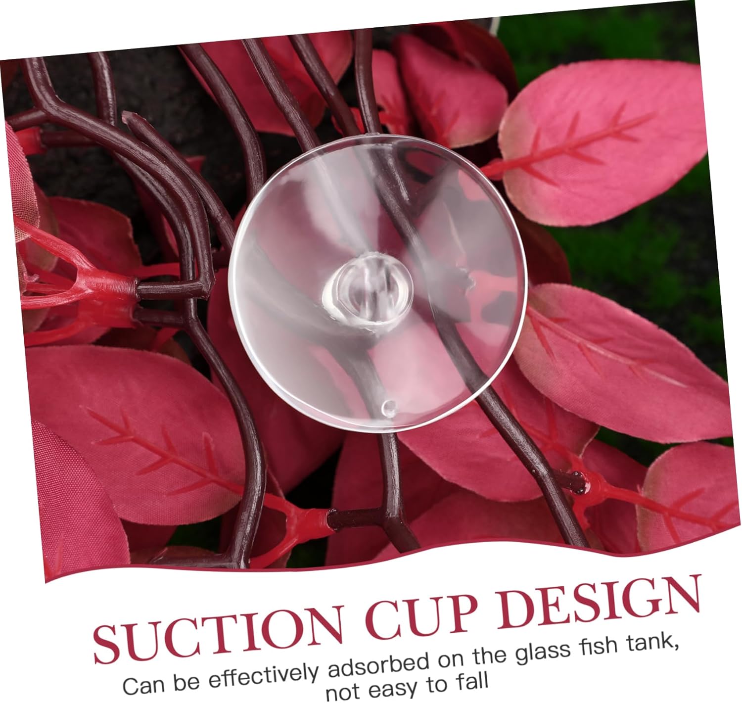 POPETPOP Aquarium Artificial Plant with Suction Cup: Resin Fish Tank Plant for Aquarium Decoration – Hanging Red Leaves Decor for Betta Fish Tank Accessories – Red, 11.8 Inch