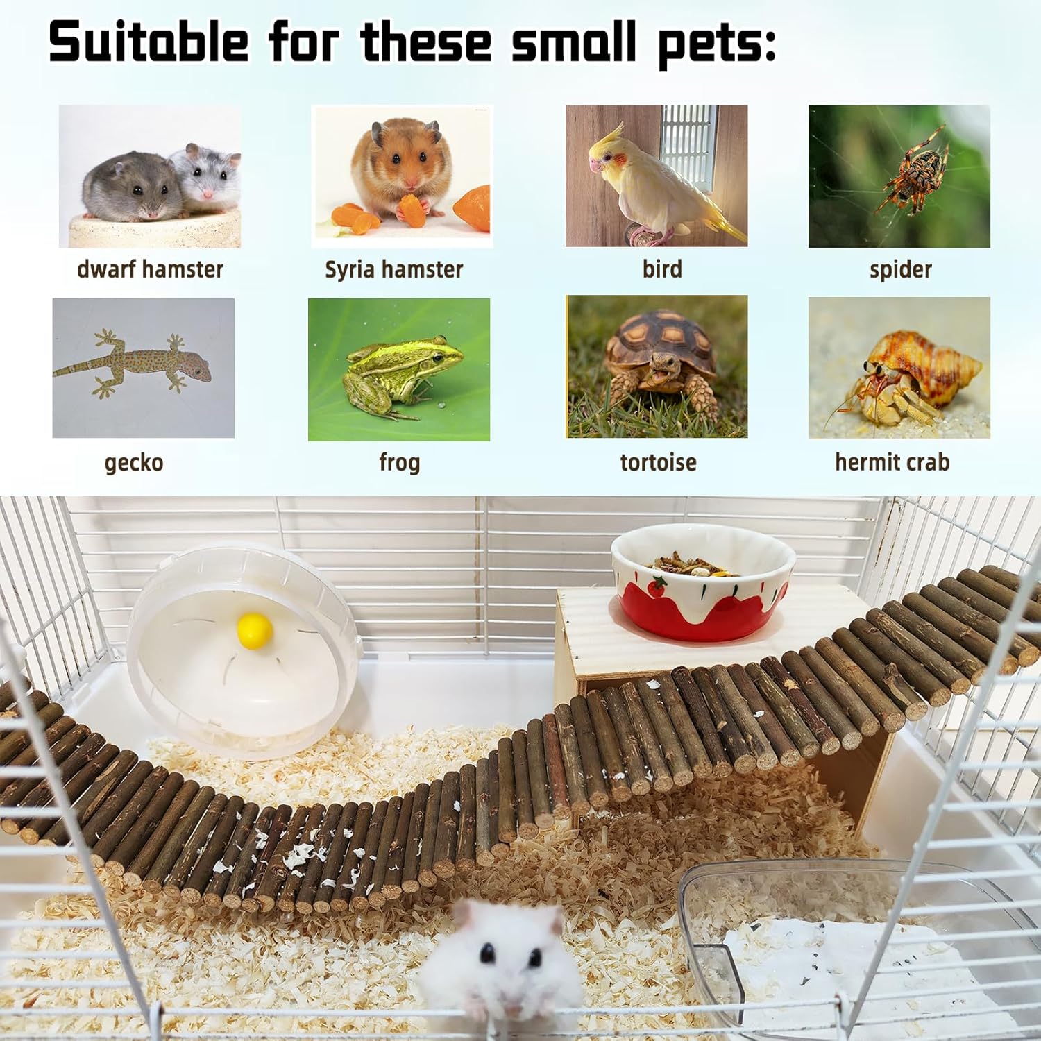 100% natural wooden hamster toy bridge, hamster biting toys,rat chew, safe for chewing to satisfy her instinctual urges and help keep incisor teeth trimmed and healthy.