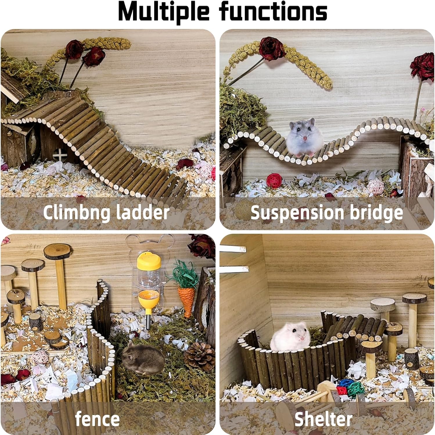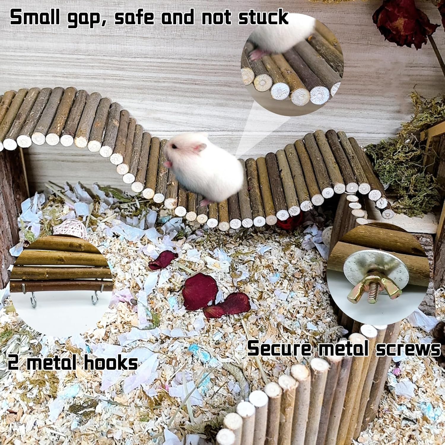 Rat Bendy Long Suspension Bridges Gerbil Wooden Ramp Hamster Cage Climbing Ladder Natural Wood Chews Toys for Rodents Mouse Dwarf Hamster