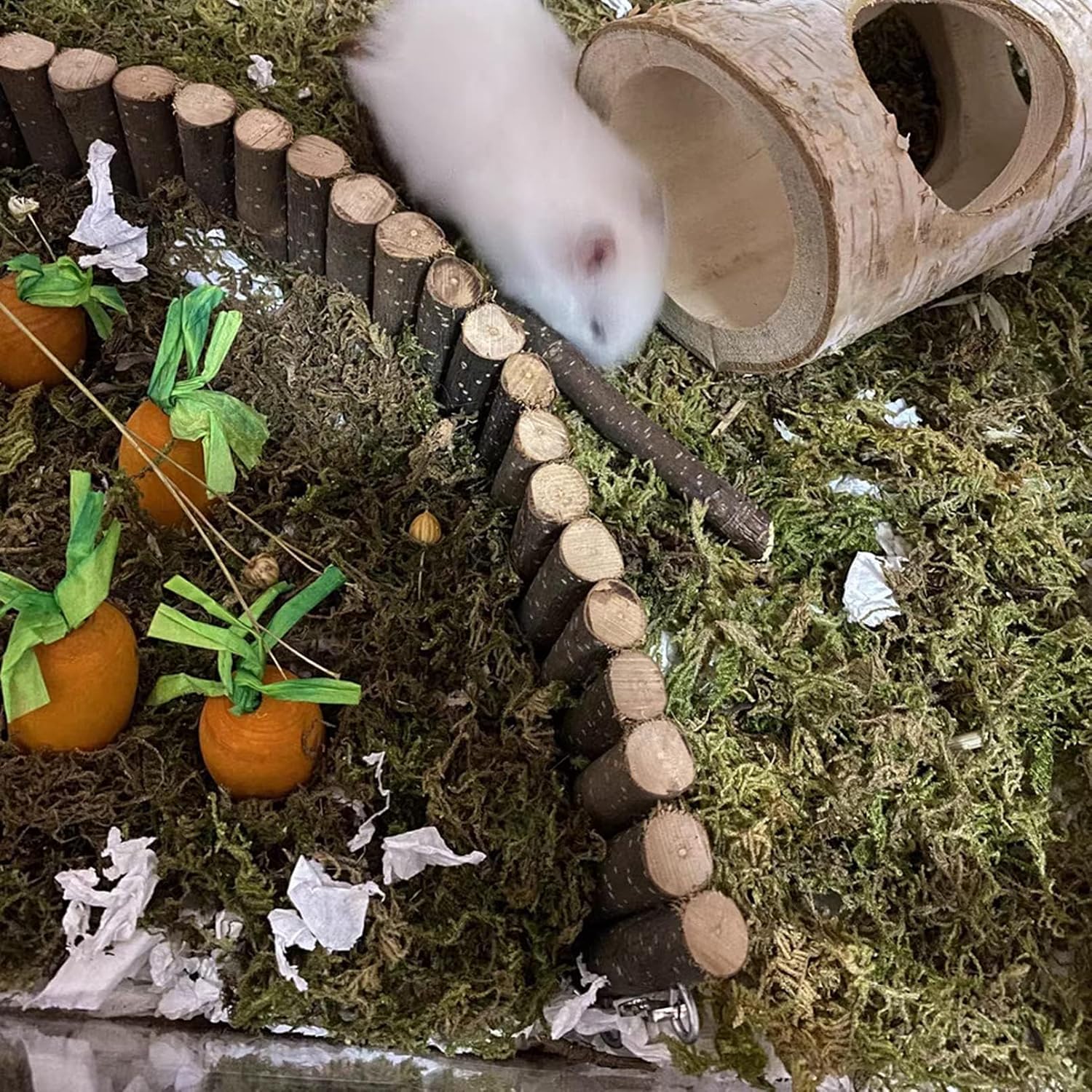 Pets can sleep under the hamster toy bridge and can safely chew the bridge. Pets love to hide and play in this large sized twig tunnel. Promote exercise and help to develop coordination and balance skills