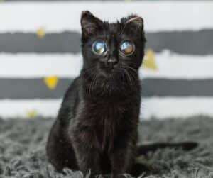 Her eyes may look otherworldly, but they tell a very earthly story. One of resilience. One of science catching up to save a life. One of humans refusing to give up on a tiny kitten who deserved a chance.
