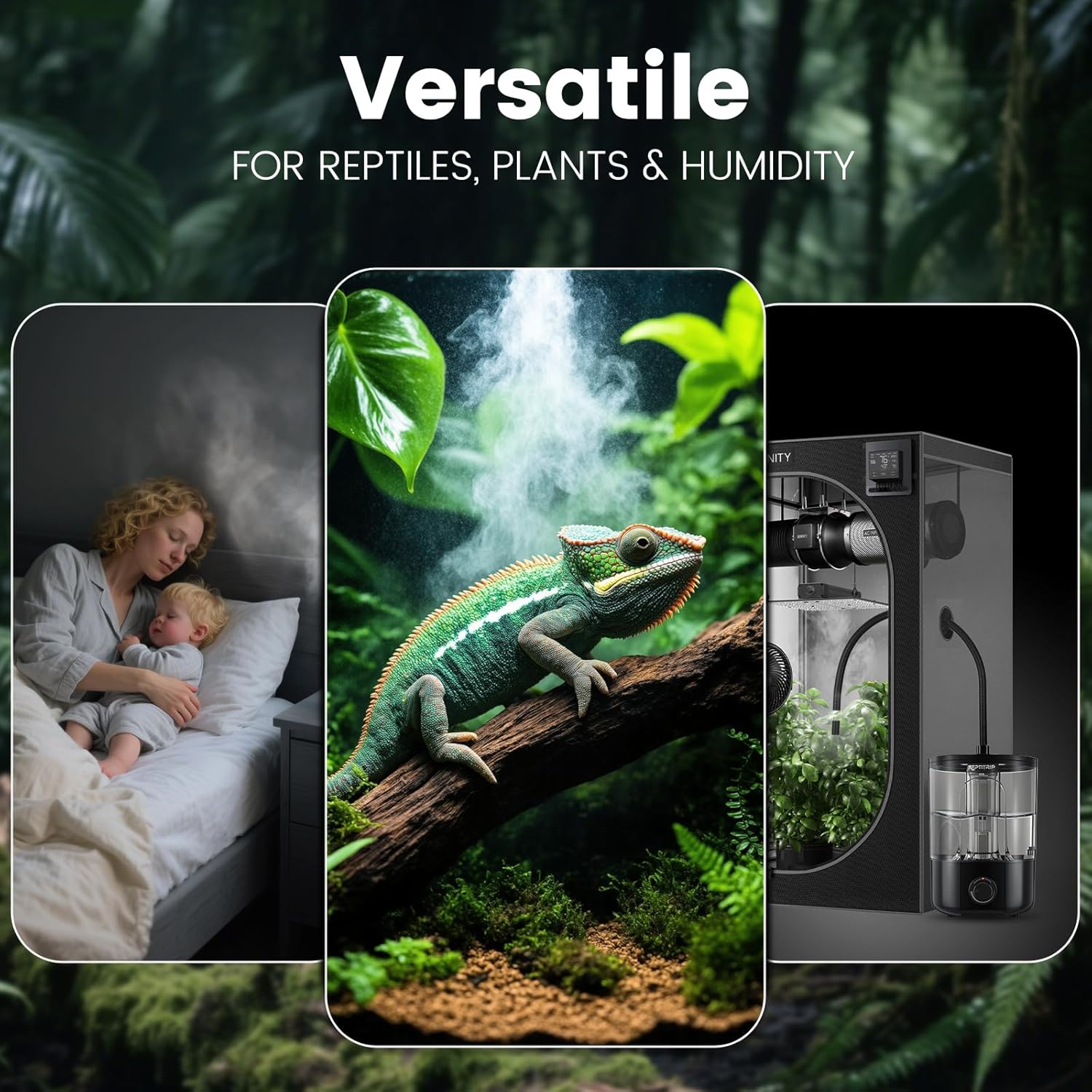 1 Gallon Reptile Humidifier Fogger for Terrariums, Adjustable Fog Volume, Ideal for Bearded Dragons, Lizards, Geckos, Snakes, Tortoises, Amphibians Humidity Increasing