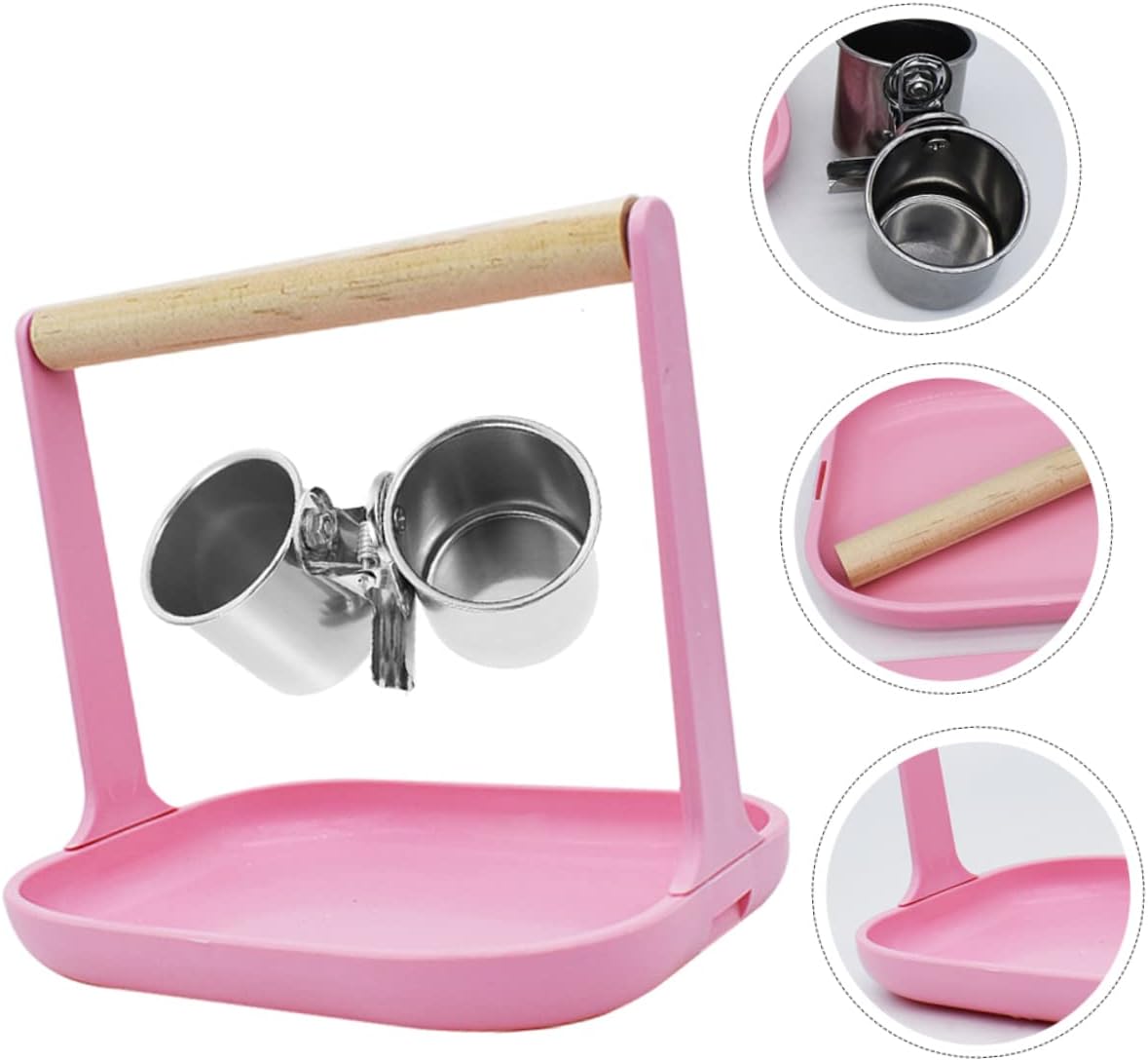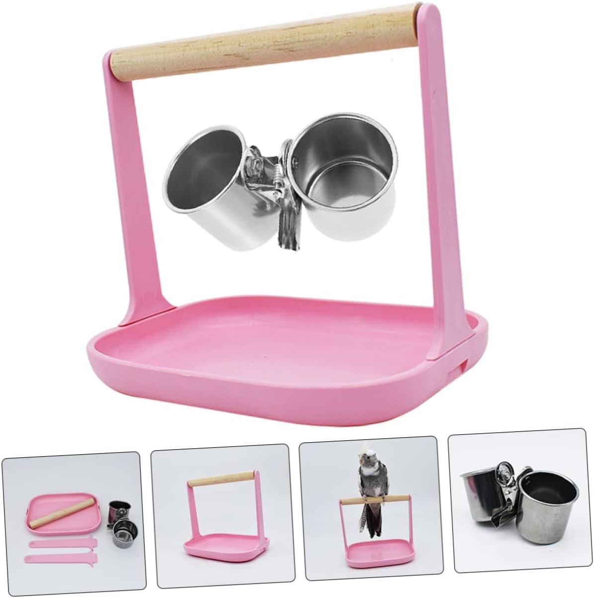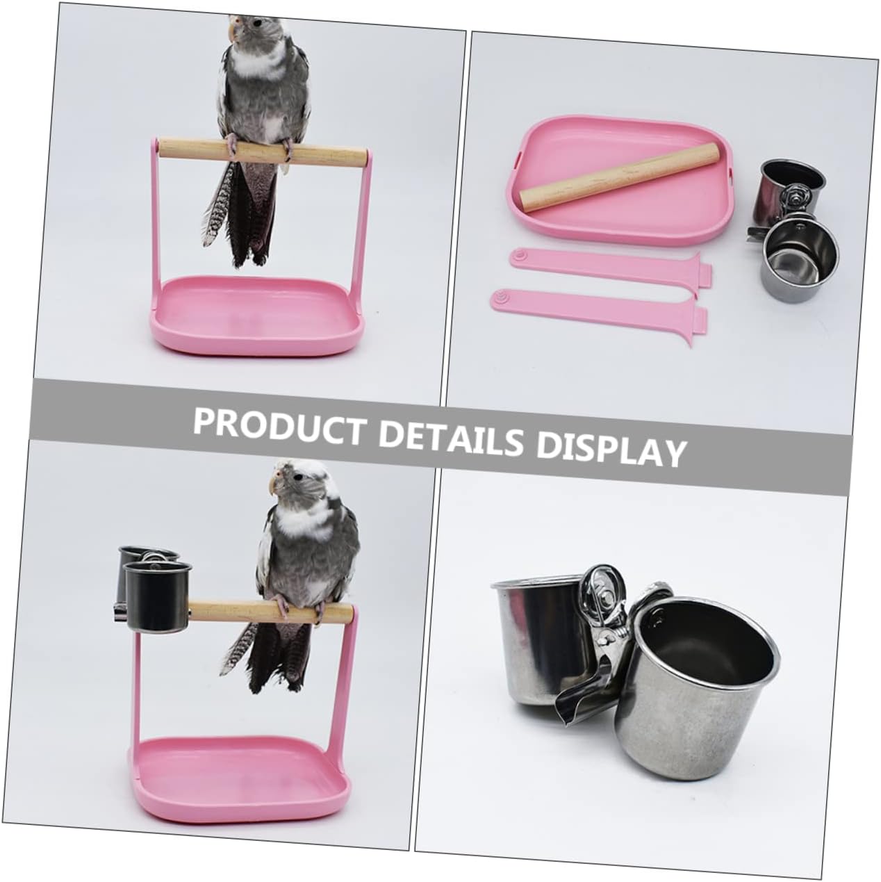 1 Set Bird Perch Stand with Feeding Cup Portable Parrot Standing Pole for Training and Play Bird Cage Accessory Durable and Easy to Use