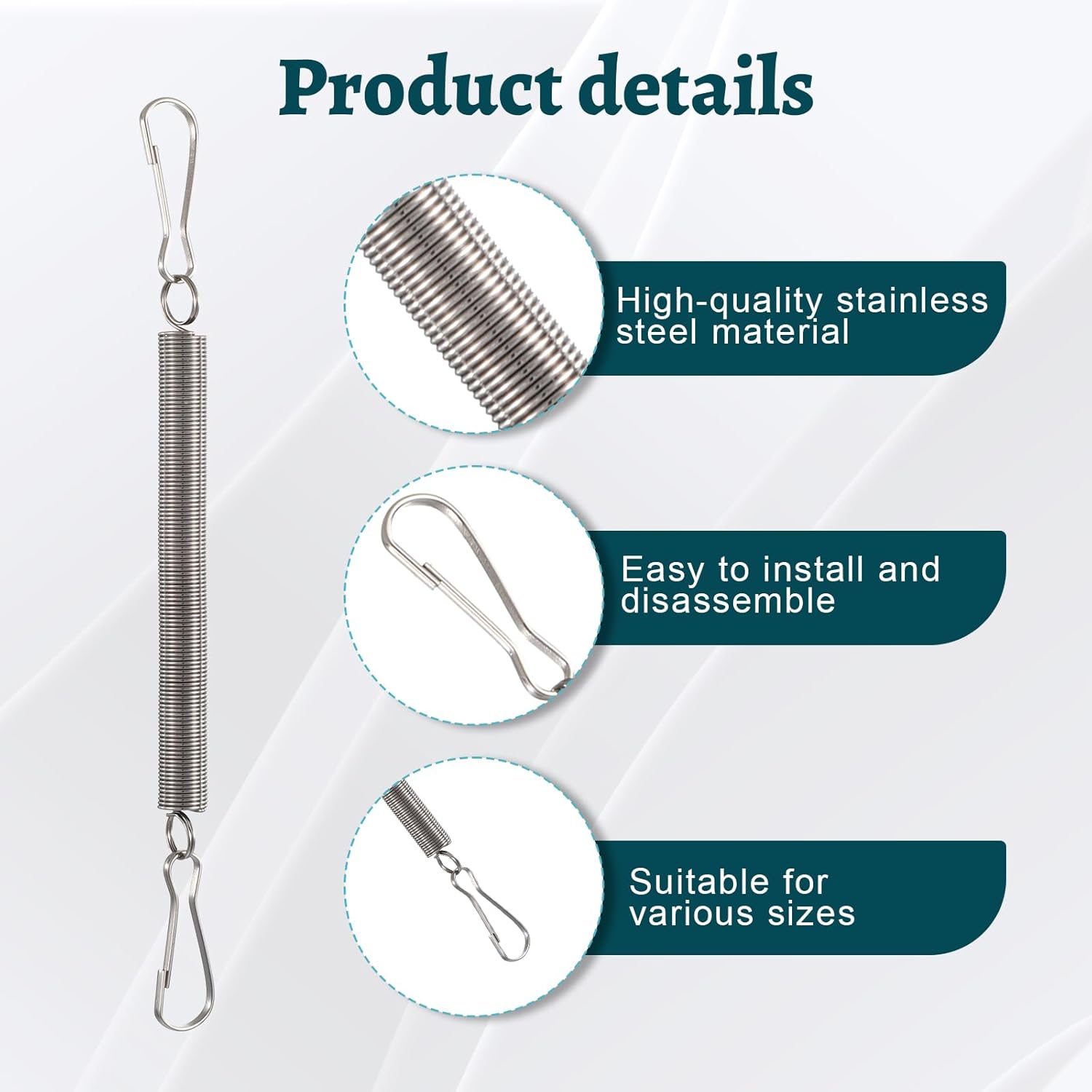 High Quality Material: These rabbit cage clips springs are made of high-quality stainless steel, which is rust-proof and corrosion-resistant. The spring with 2 clips can maintain excellent flexibility after repeated stretching and can withstand daily wear and tear
