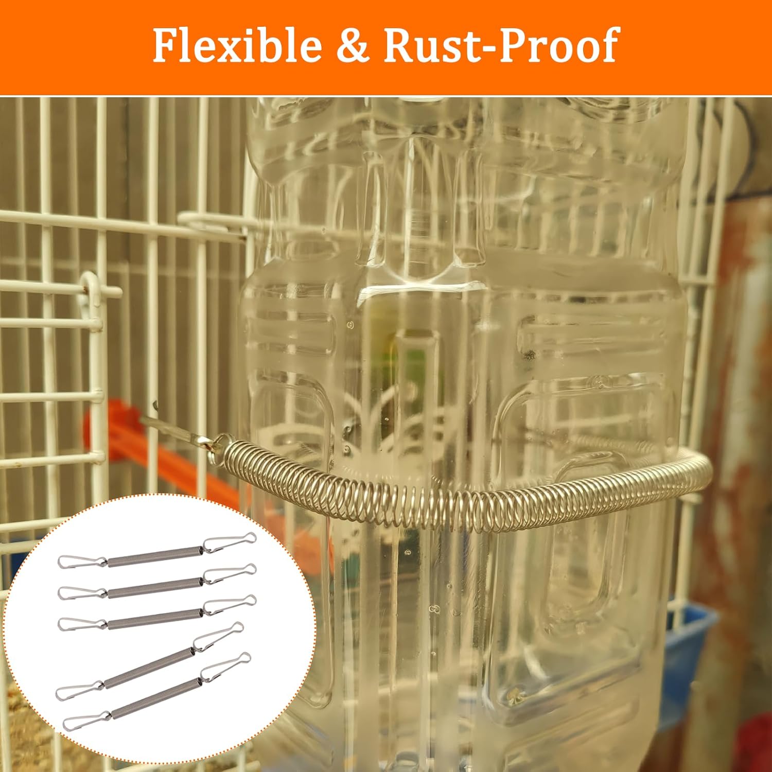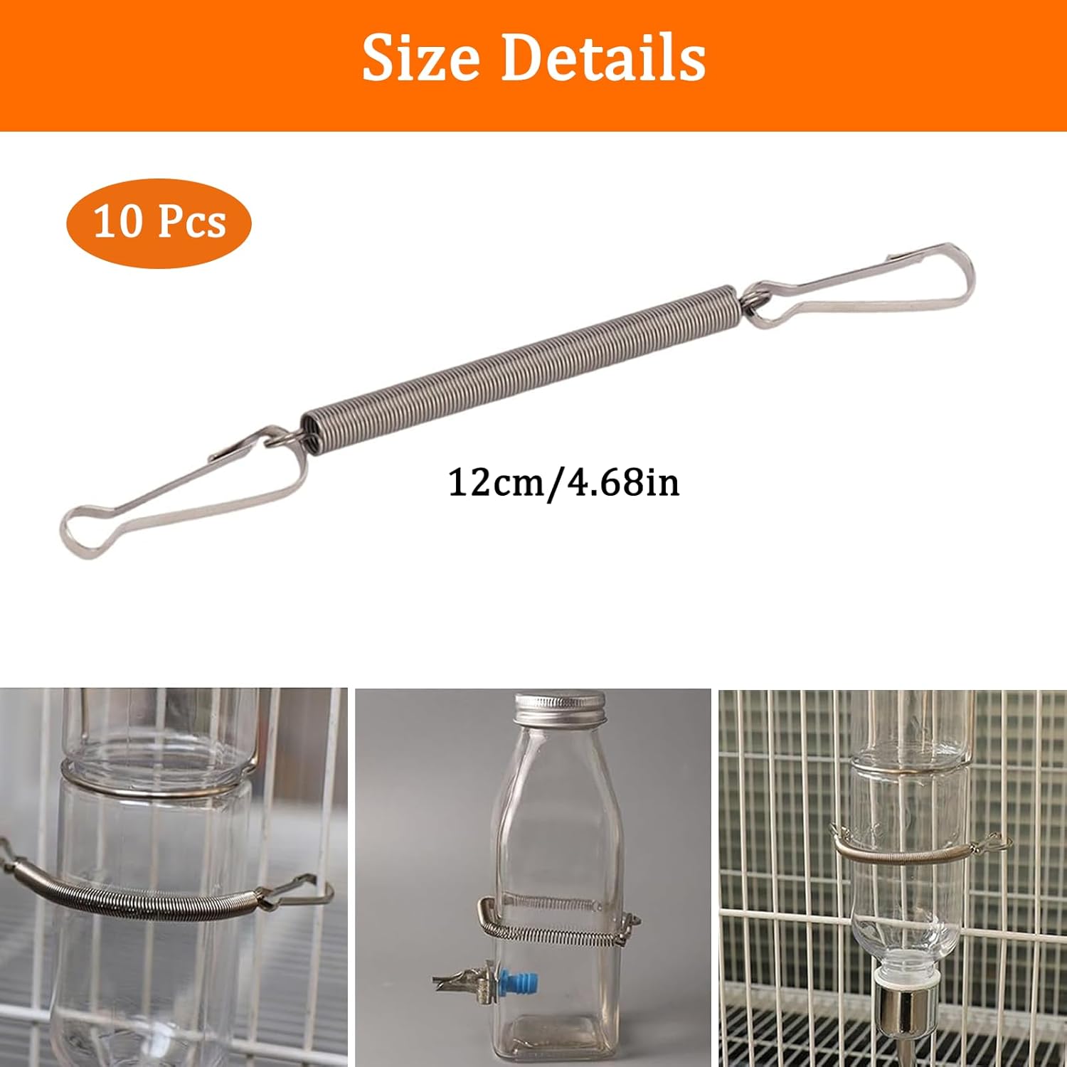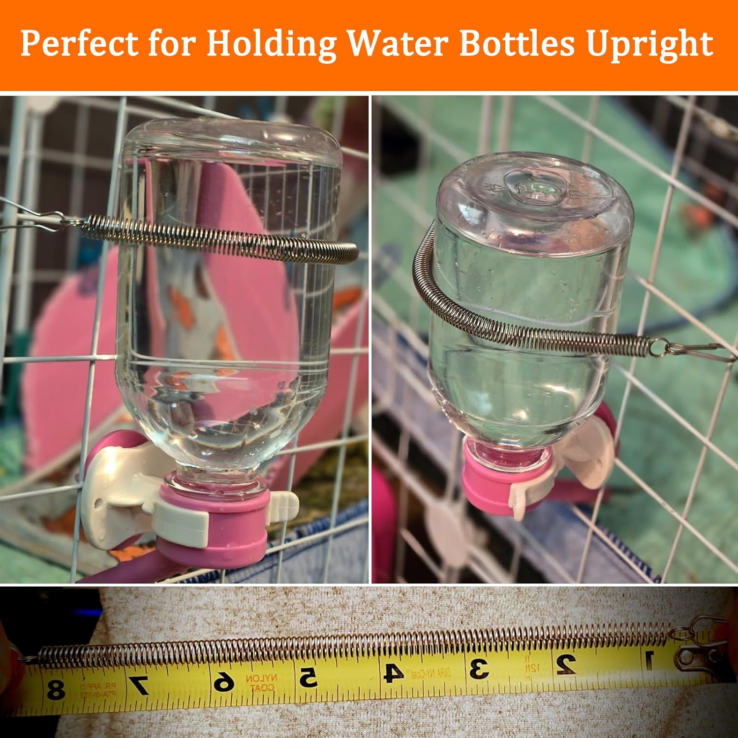 We have had rabbits for years, and have always used the water bottles with the wire holders that they come with. I did not know about these springs until I saw them on Amazon. We ordered some for the water bottles, and they are a game changer! So very easy to use and keep the bottles attached without having to maneuver them into the old wire holders. We ordered a second set to be sure we had enough on hand. I highly recommend these for your small animals.