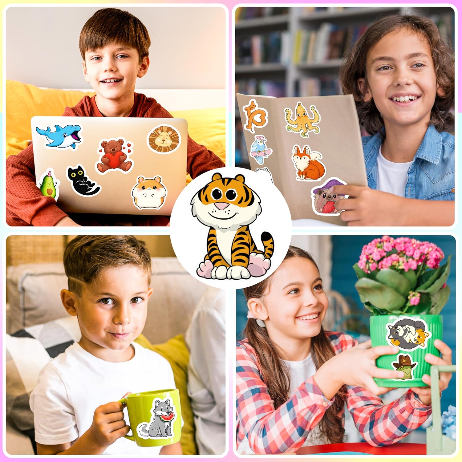 100 PCS Water Bottle Stickers for Kids Waterproof Cute Stickers for Water Bottles No Duplicates Animal Stickers for Kids Laptop, Water Bottle, Party Favor & Classroom Reward