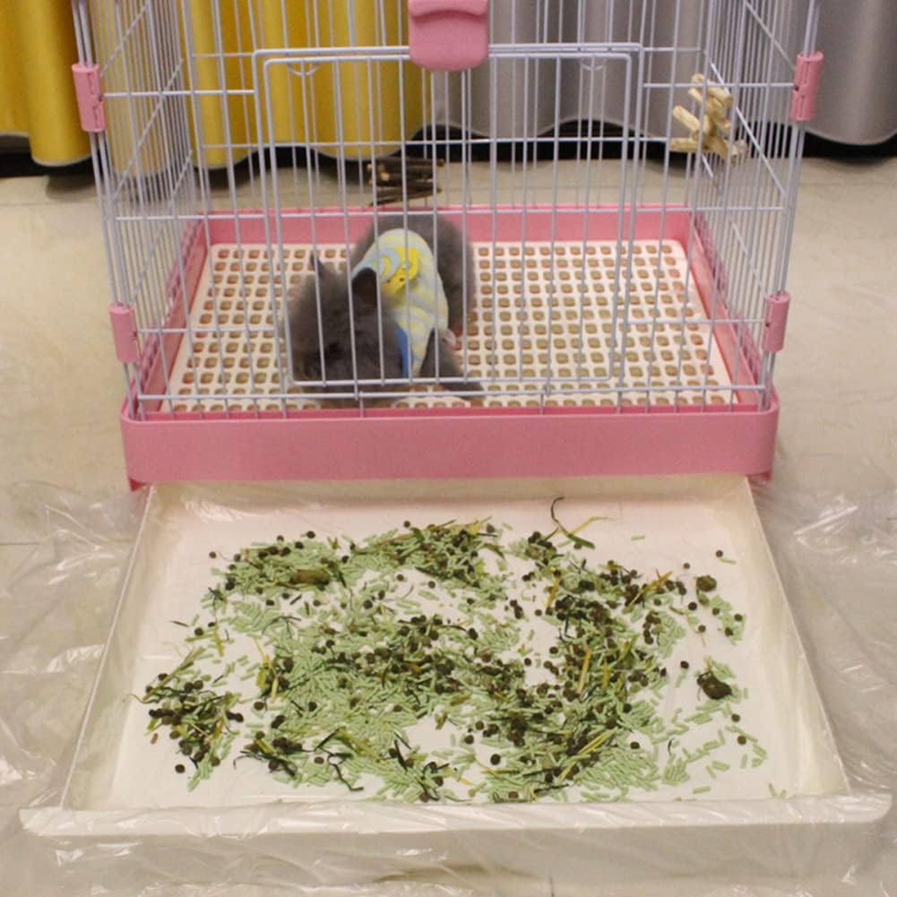 ●Easy to use, first sprinkle a little water on the pet cage tray, then spread and flatten the disposable film, and fold the excess behind the drawer or tray.