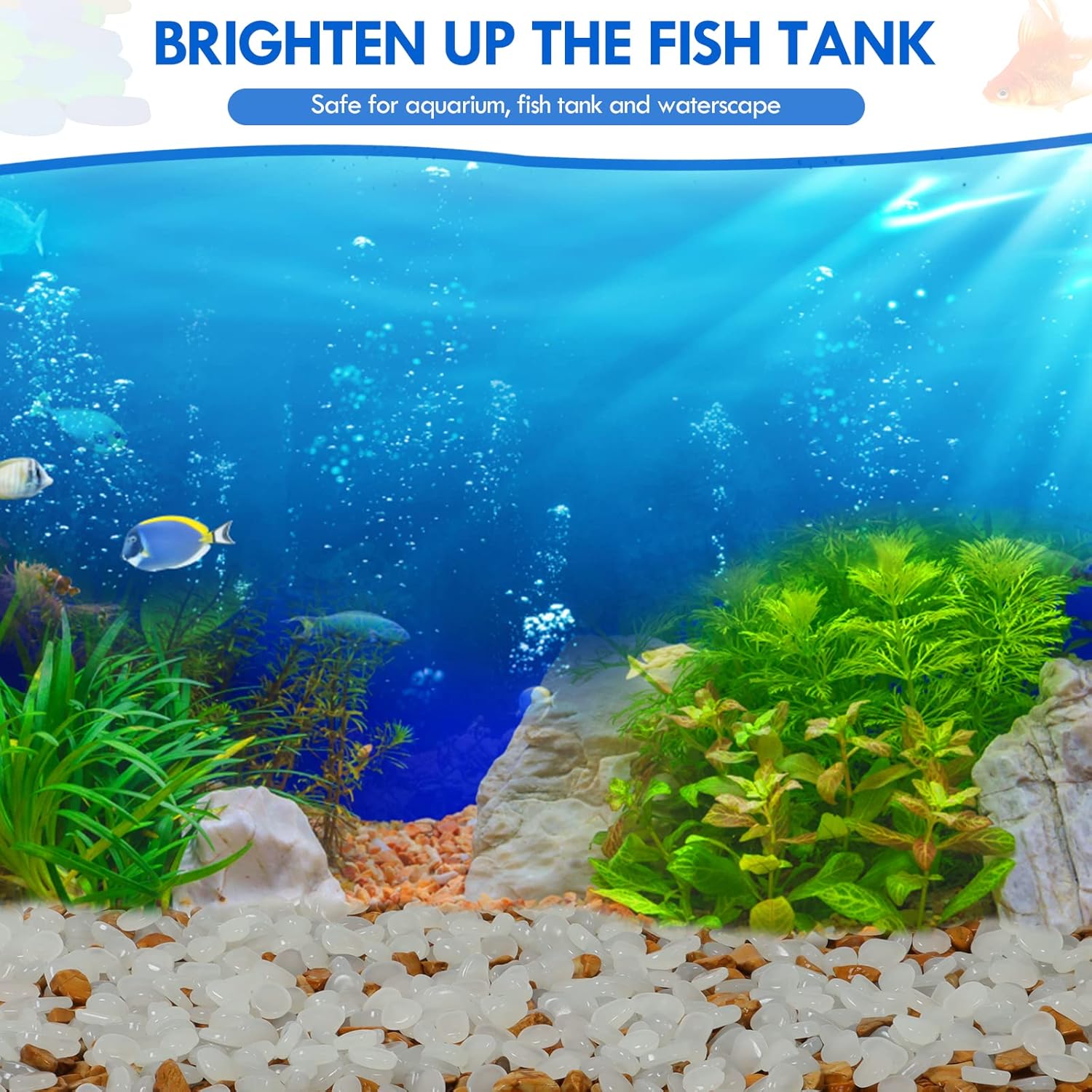 1000PC Glowing Rocks for Aquarium Decoration Glow in The Dark Pebbles Glowing Fish Tank Stones Luminous Pebbles Powered by Light Or Solar(White)