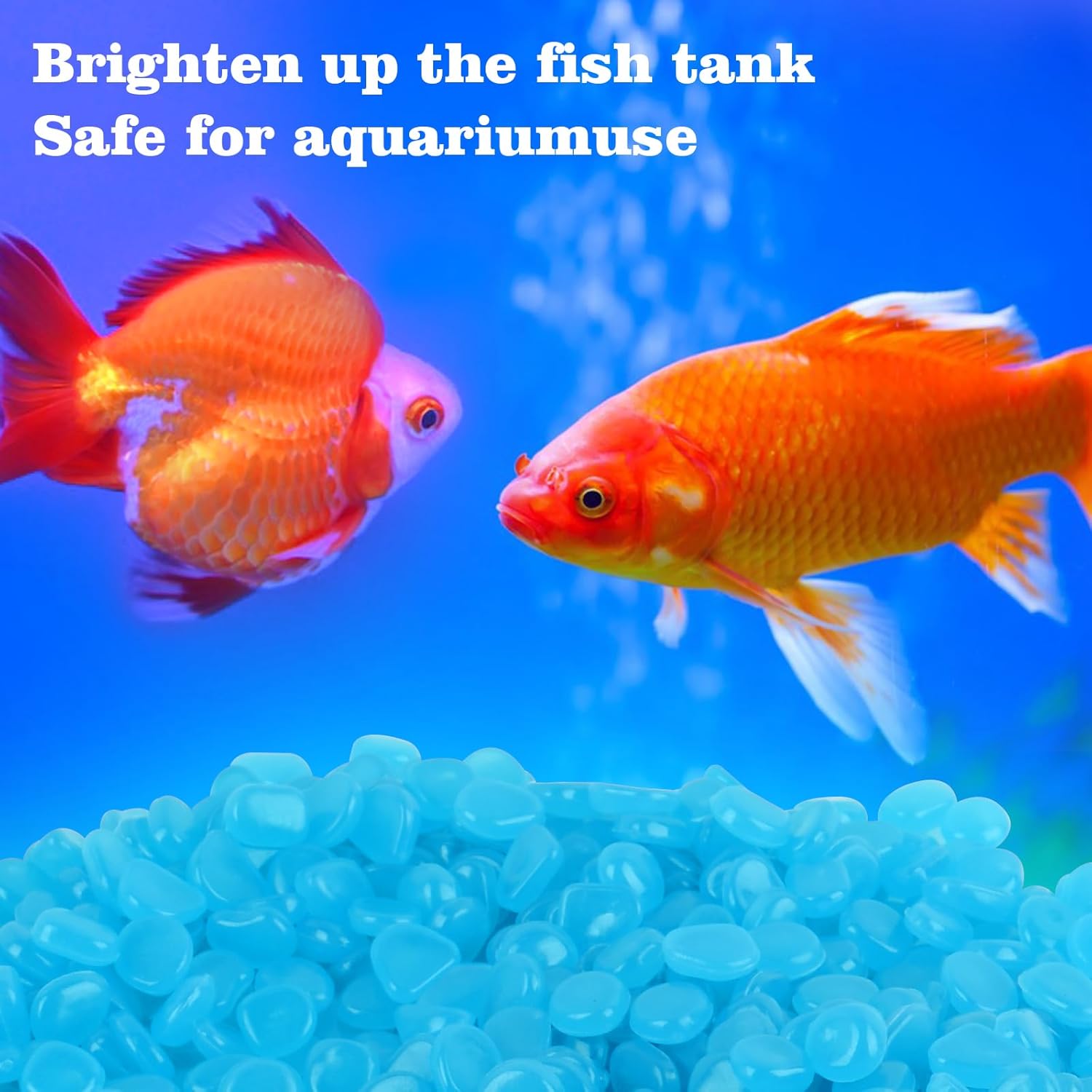 I got the 1000 piece blue glow in the dark pebbles. They are amazing and beautiful both in the light and as glow rocks in the night. The glow doesnât last too long so it wonât stress out your fish. I did order a second one though because the 1000 didnât quite cover the bottom of my octagonal 20 gallon tank.