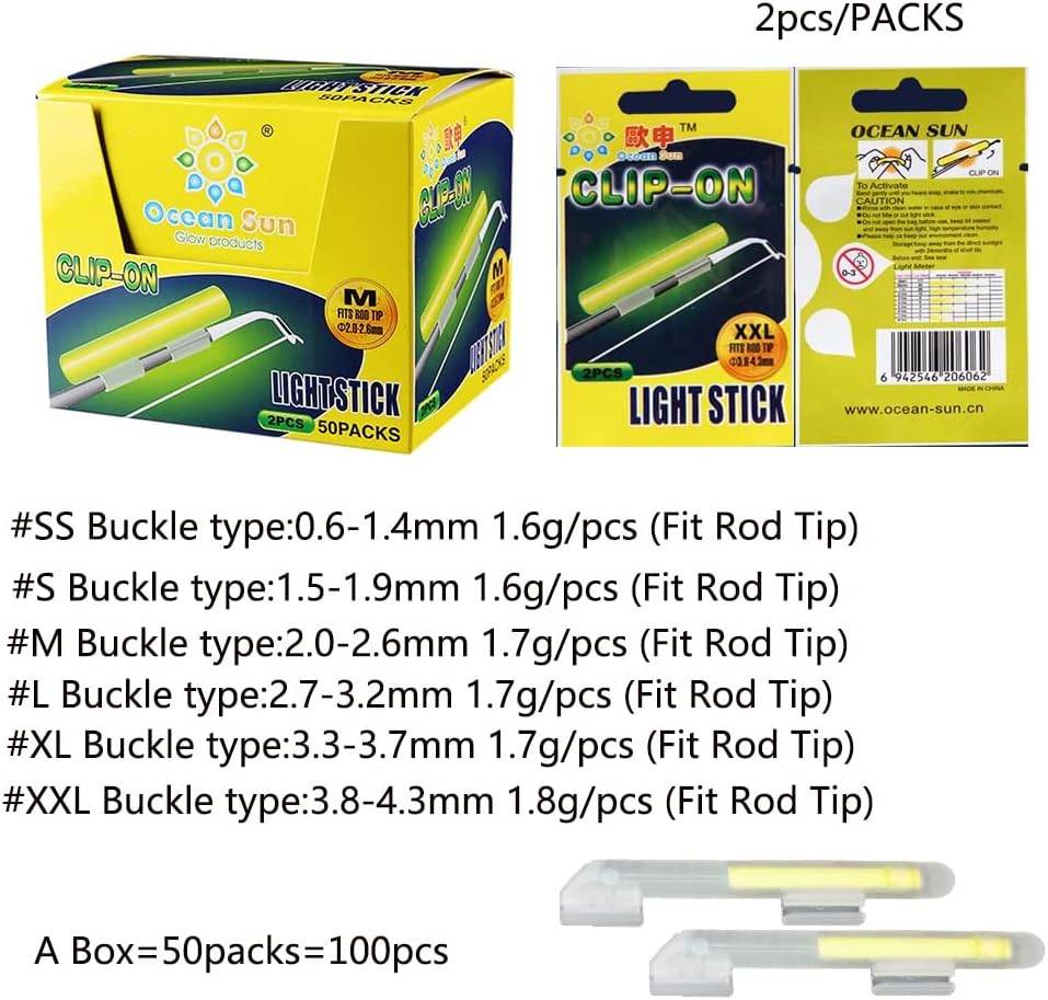 8 reviews for 100PCS Ocean Sun Clip Snap On Fishing Glow Sticks Rod Tips, Pole Light for Catfishing Surf Bank in The Dark