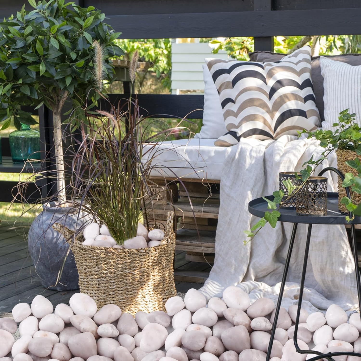 COLOR AND SIZE: The length of our slight polished white river rock stone is about 1 to 2 inches, the large size and the beautiful bright white color makes these stones ideal for use indoor and outdoor for a unique decorative assent. If you use the large white rocks to decorate potted plants, our white pebbles with perfectly polished accent will make your plants really stand out. These white river rocks will add extra upscale touch to your interior designs or outdoor garden landscaping projects.