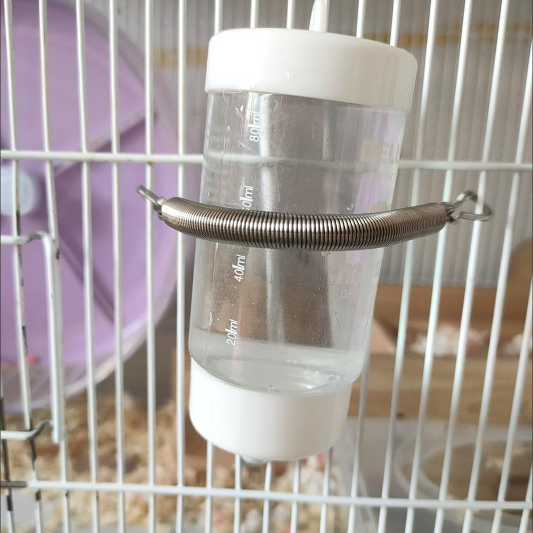 Versatile Design: Stainless steel stretch springs with clips, suitable for securing drinking bottles for parrots, rabbits, and hamsters.