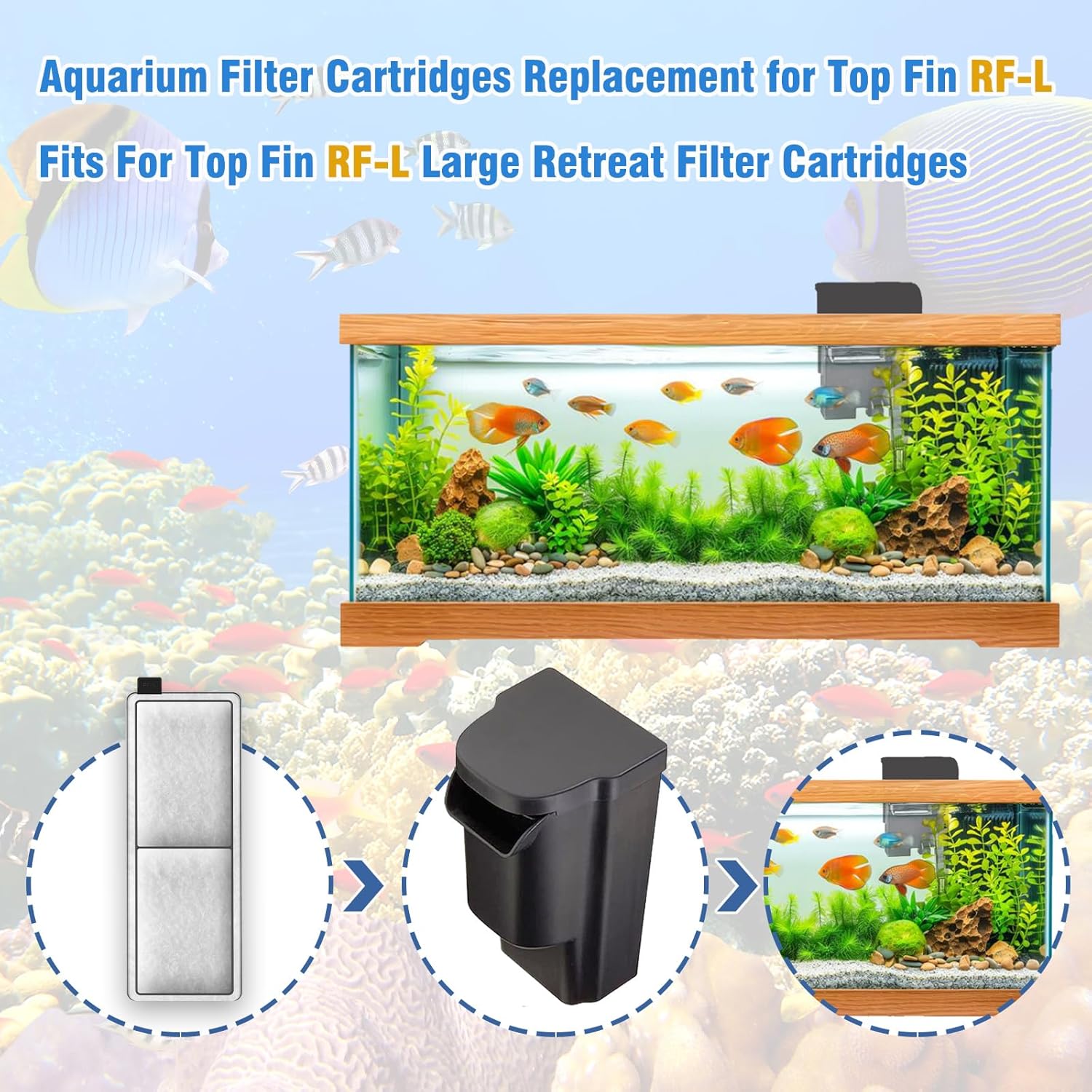 12-Pack Fish Tank Aquarium Filters Replacement for Top Fin RF-L Large Retreat Filter Cartridges