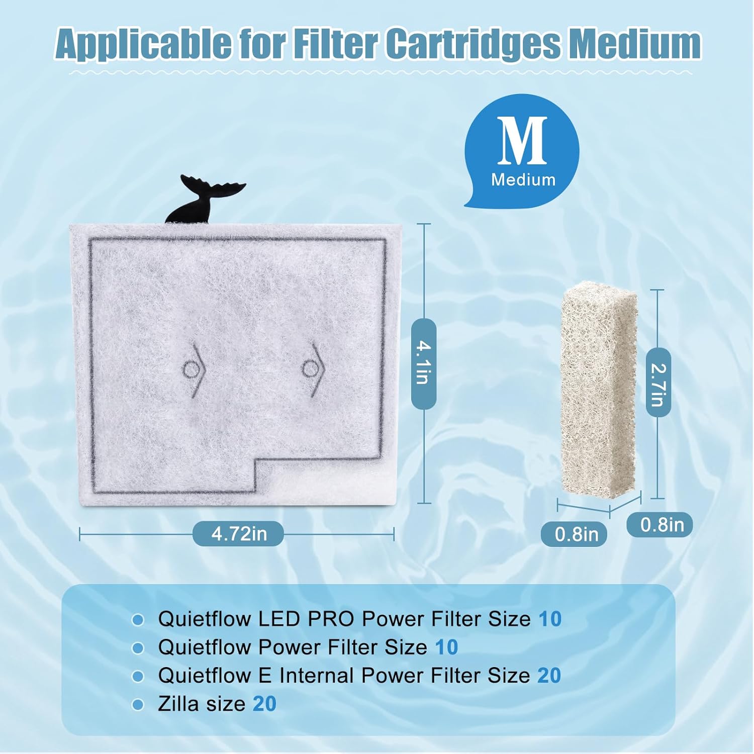 Perfect Compatibility: Our medium filter cartridges is perfect compatible for QuietFlow LED PRO Power Filter Size 10 & QuietFlow Power Filter Size 10 & QuietFlow E Internal Power Filter Size 20 & Zilla size 20 on the market. With this aquarium filter cartridge, you can keep the water healthy and clean for your fishes all the time.