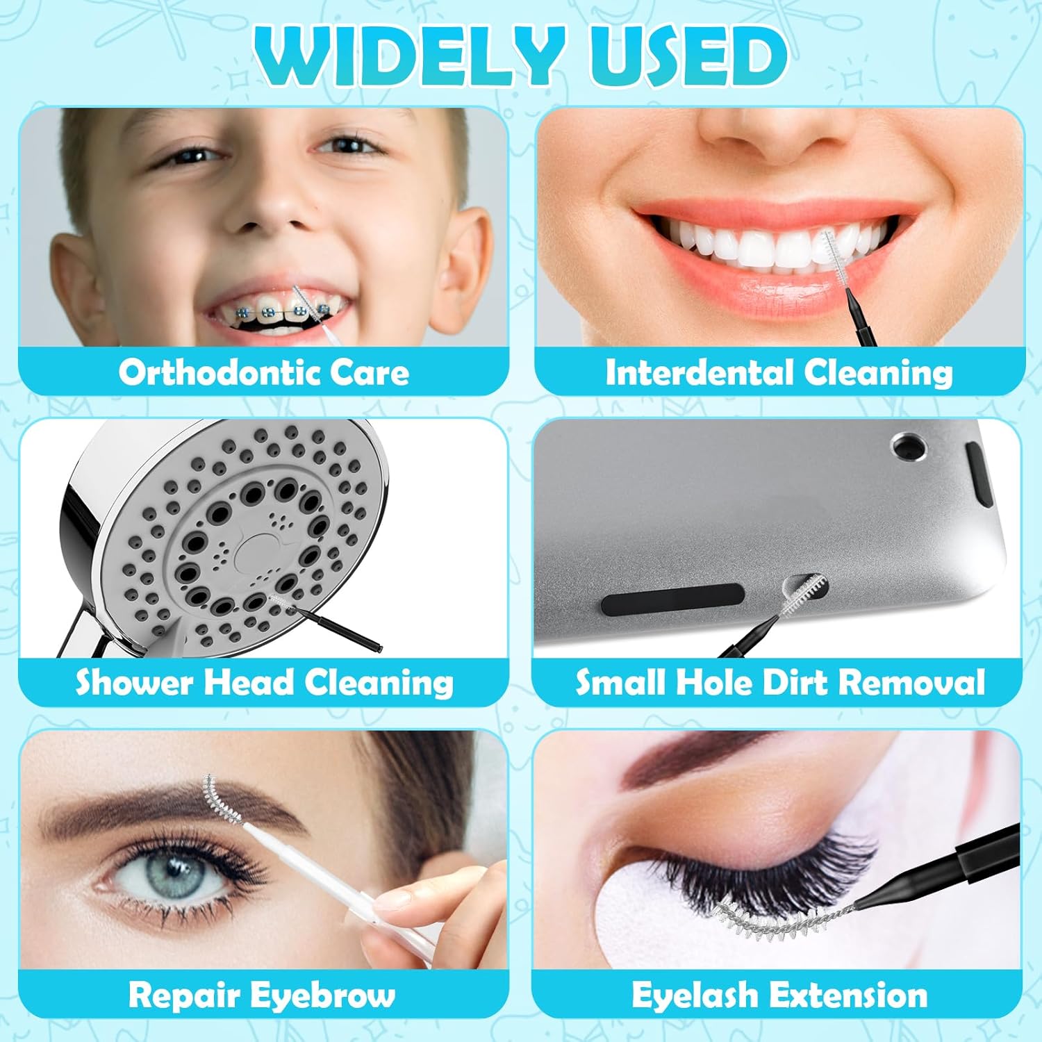 Versatile Uses: Don’t throw away used interdental brushes; you can use them as shower head brushes to clean water outlets, increase water flow, or maintain and clean speakers and other small areas of electronic devices such as phones and tablets. Additionally, these brushes can also serve as eyebrow brushes and eyelash brushes, allowing you to precisely shape your eyebrows, extend your eyelashes, and discover more other versatile uses!