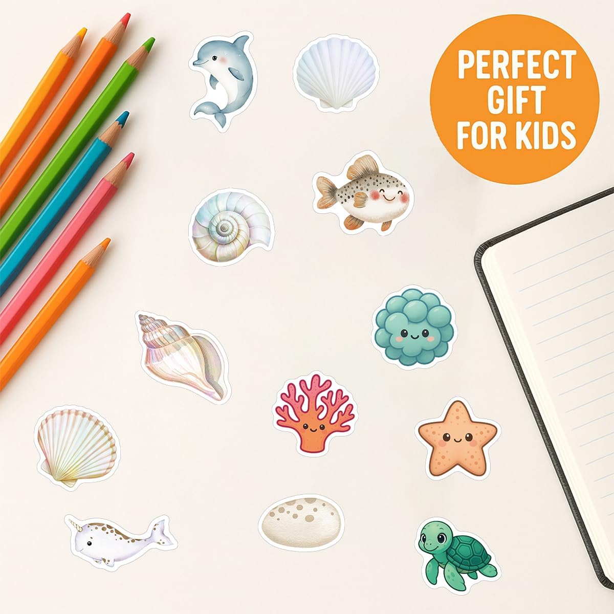 150 Pcs Ocean Animal Stickers, Under The Sea Animal Stickers for Kids Teacher Reward Water Bottle Notebook, Phone Case Laptop Kindle, Fish, Turtle, Seahorse, Whales, Starfish, Shell, Coral Stickers