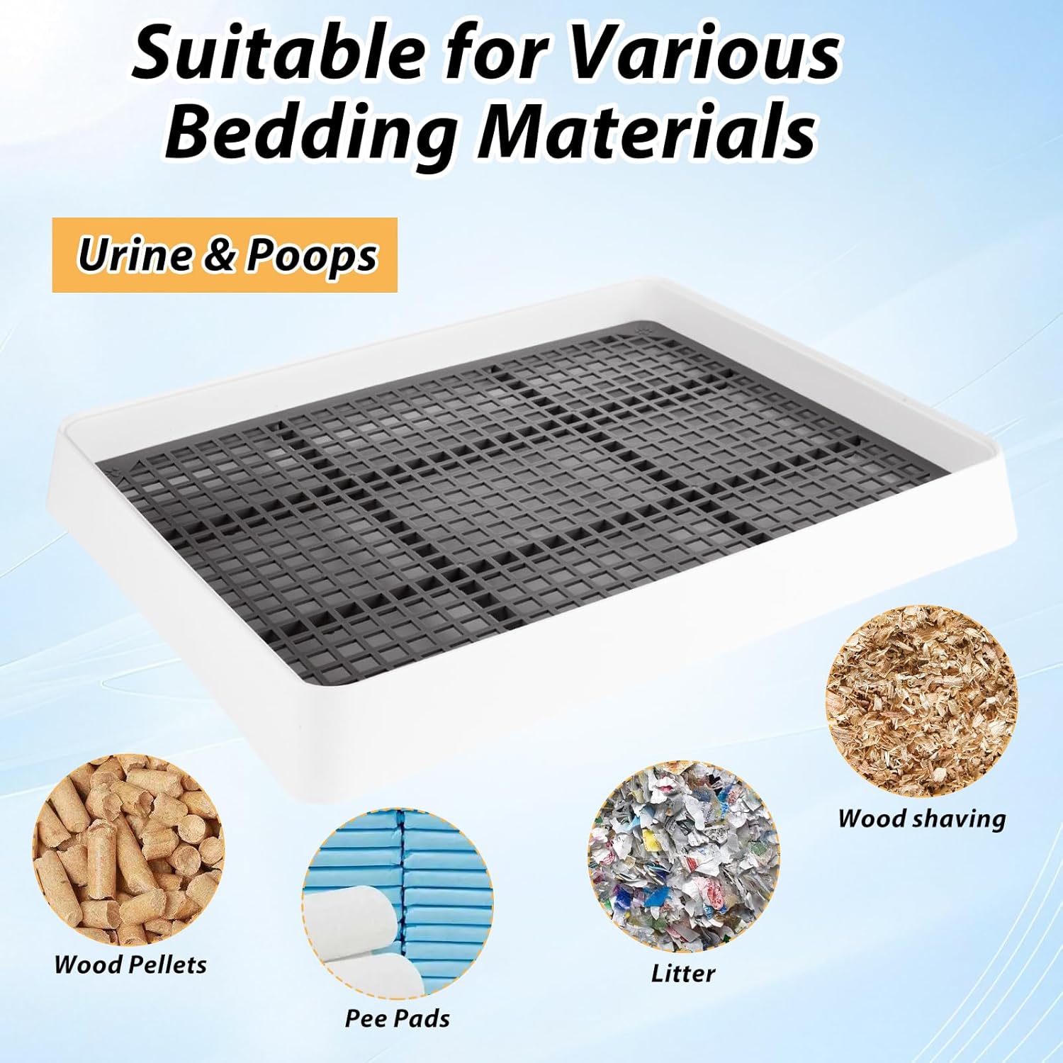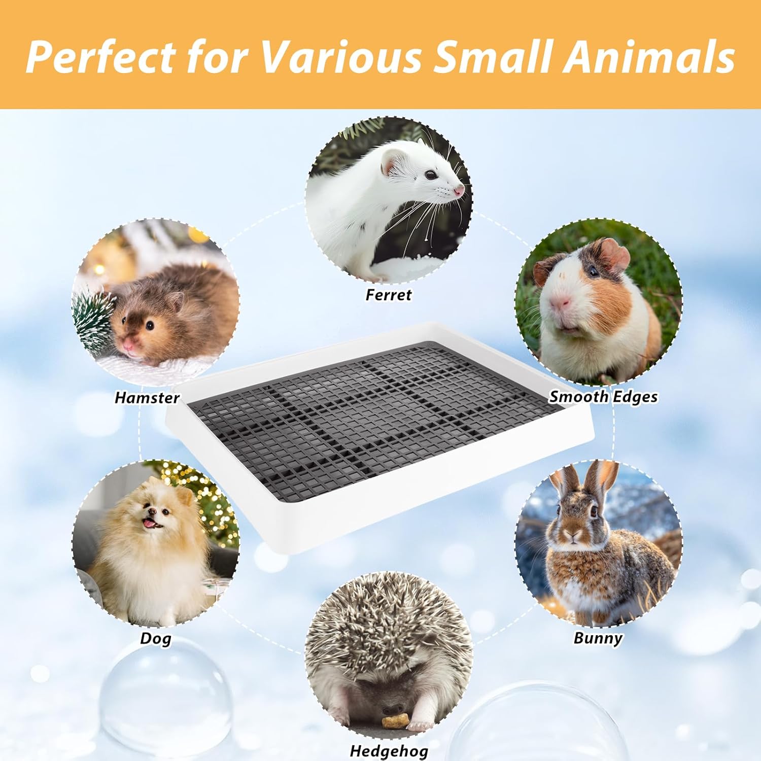Wide Applications: The 15x12x3 guinea pig litter box with grid is perfect for training a variety of small to medium-sized animals to use the litter box, such as rabbits, guinea pigs, hamsters, ferrets, hedgehogs, rats, and birds