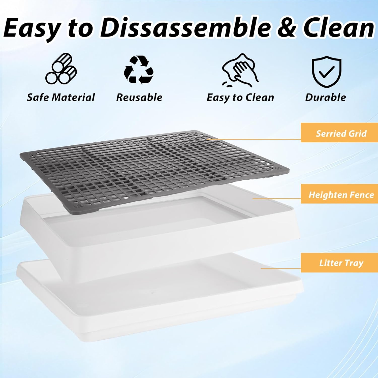Heightened Grille and Low Entry: The raised grid design of our 15x12x3 small animal potty ensures that your small animal’s feces and urine won’t splash, keeping your pet’s feet dry and clean, and the low entry design makes it easy for your small pet to enter and exit