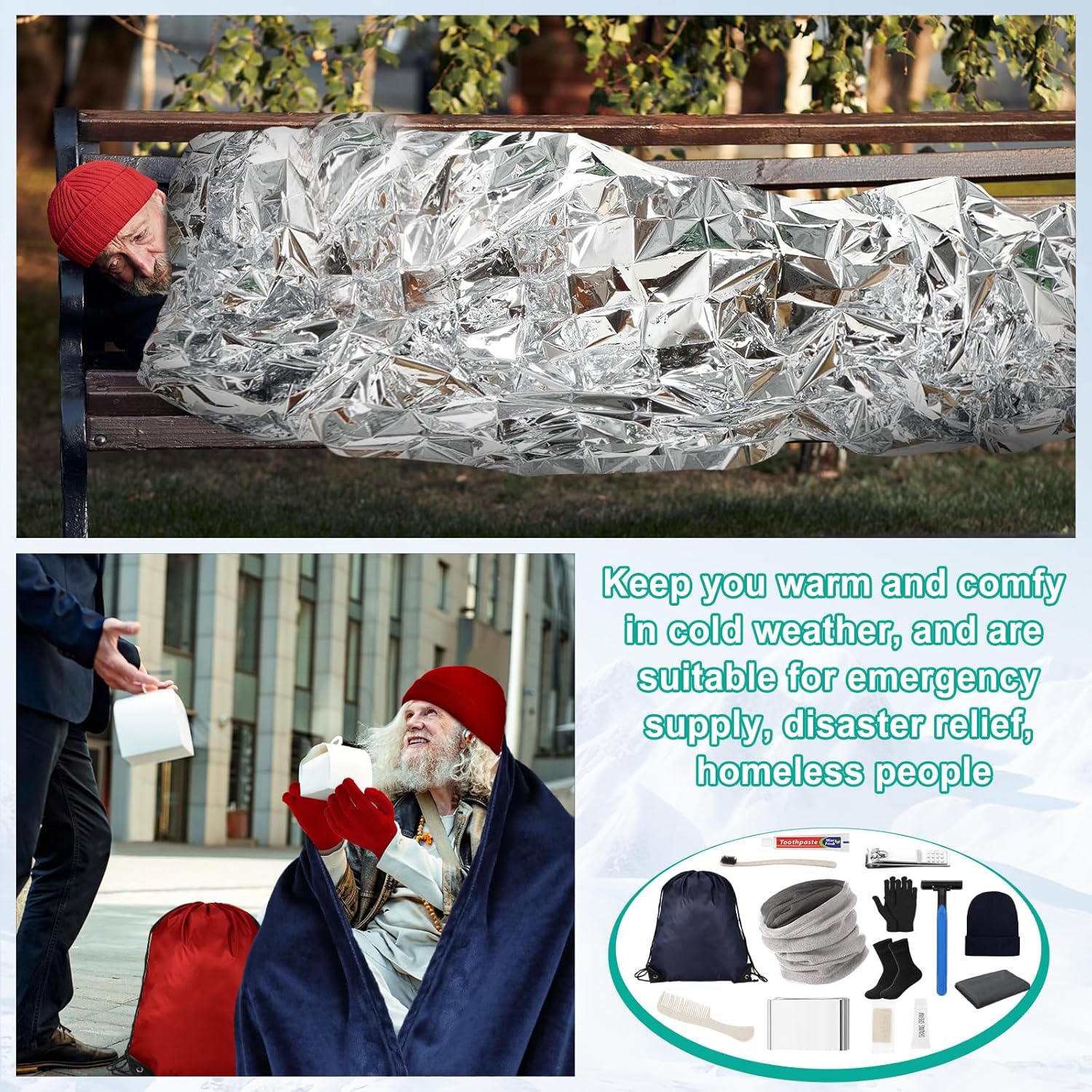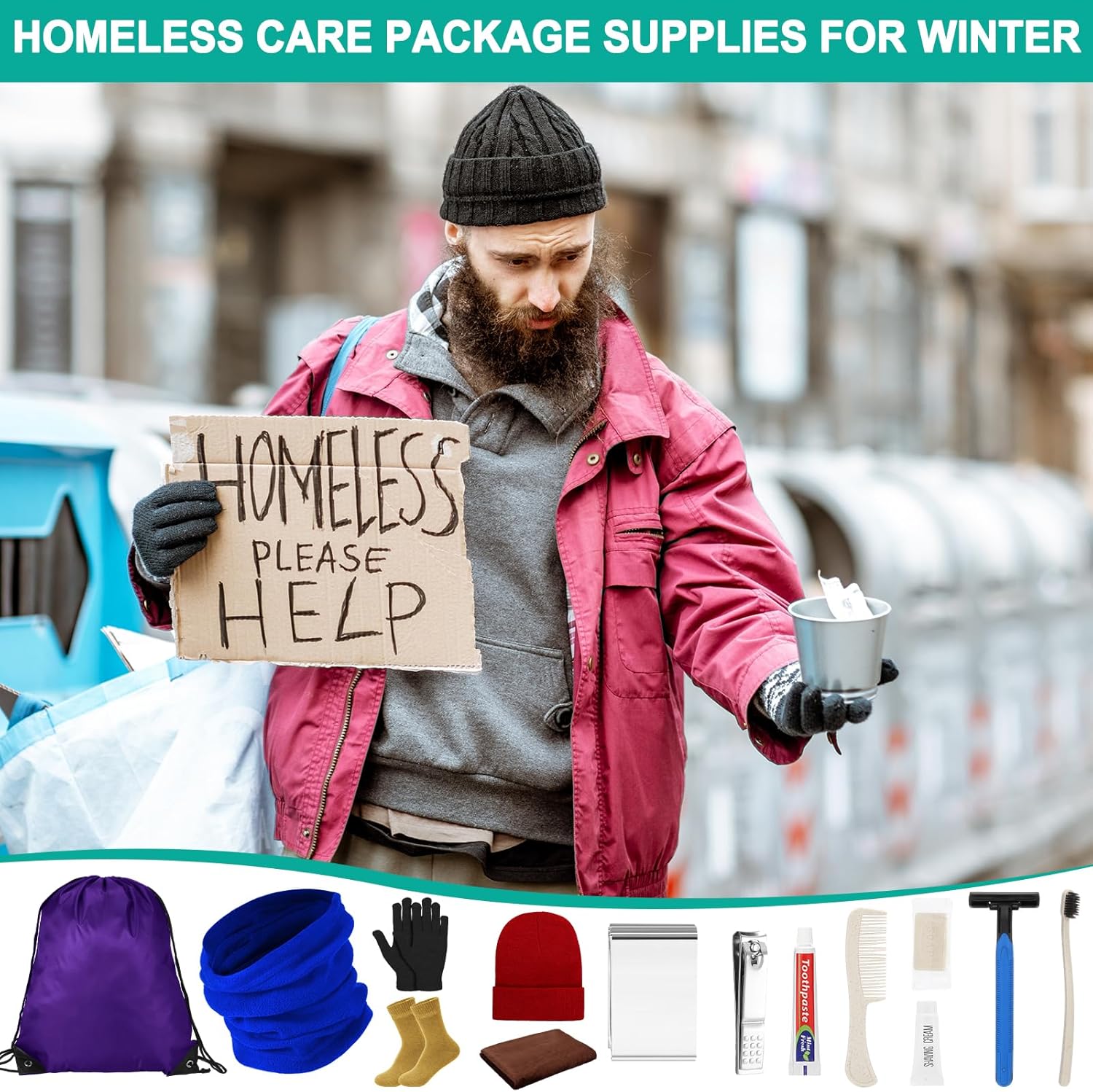 168 Pcs Homeless Care Package Supplies Hygiene Kit Winter Beanie Neck Warmer Gloves Drawstring Bags for Men Women
