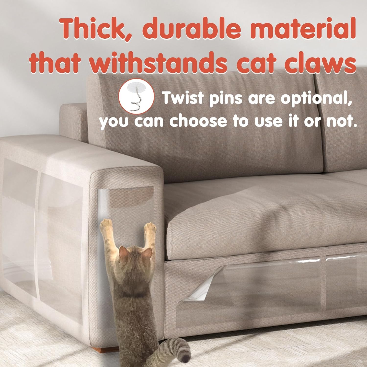 Large Cover Size: There are total 18 pcs cat tape for furniture and 72x twist pins help to fix, 12 pcs 17″ x 12″ + 6 pcs 17″ x 6″ It’s enough to cover most furniture surfaces