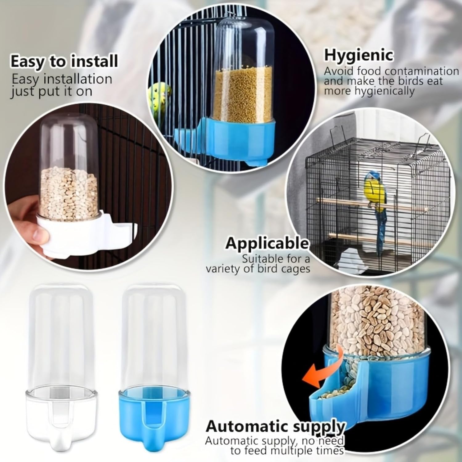 1PC Automatic Bird Waterer Feeder – Transparent PP Material (White) | for Birds | Durable Cage-Mounted Feeding/Drinking Bottle