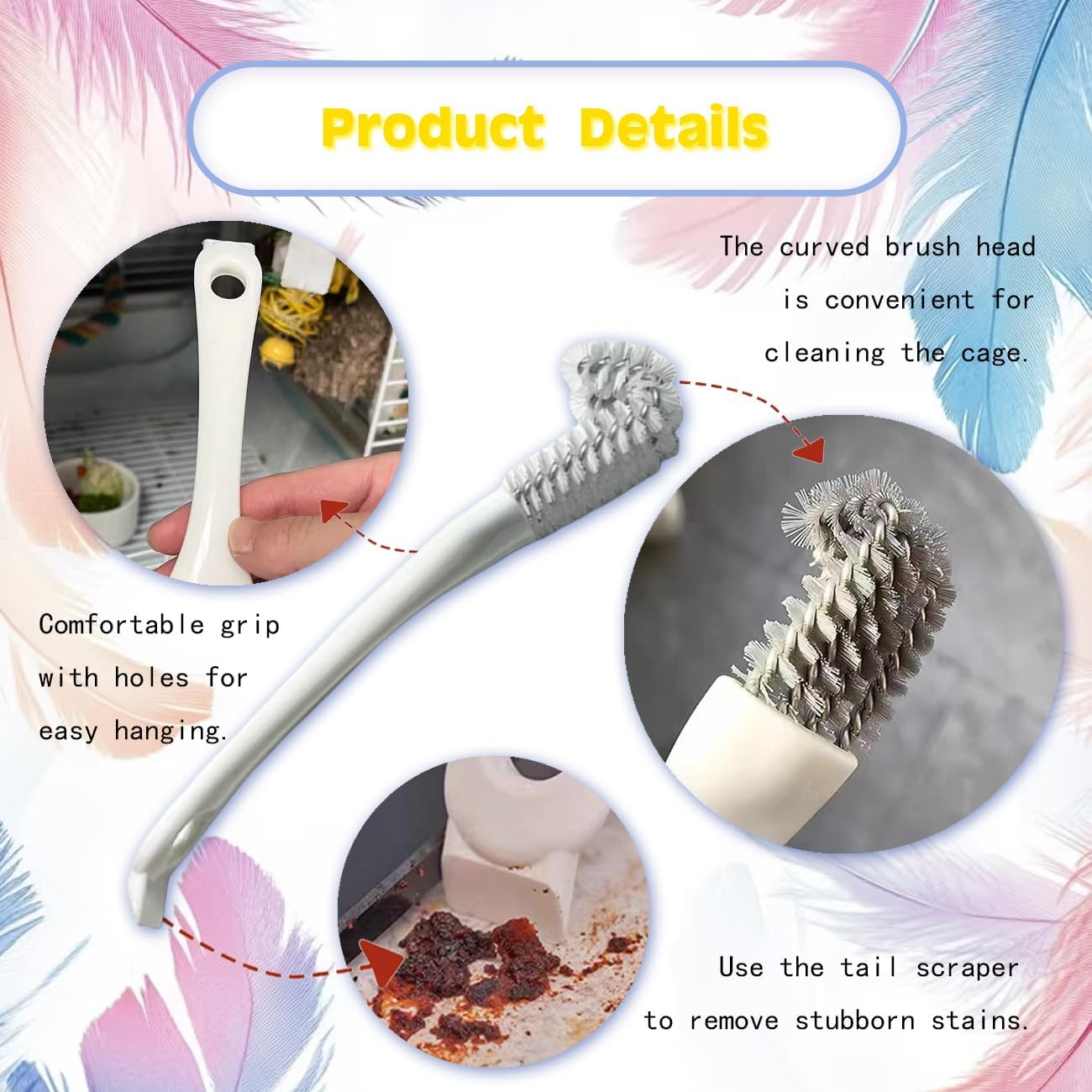 Curved Brush for Precision Cleaning – Flexible angled bristles contour around cage bars and tight gaps to remove stubborn residue, ensuring a hygienic habitat for parrots, cockatiels, and small pets