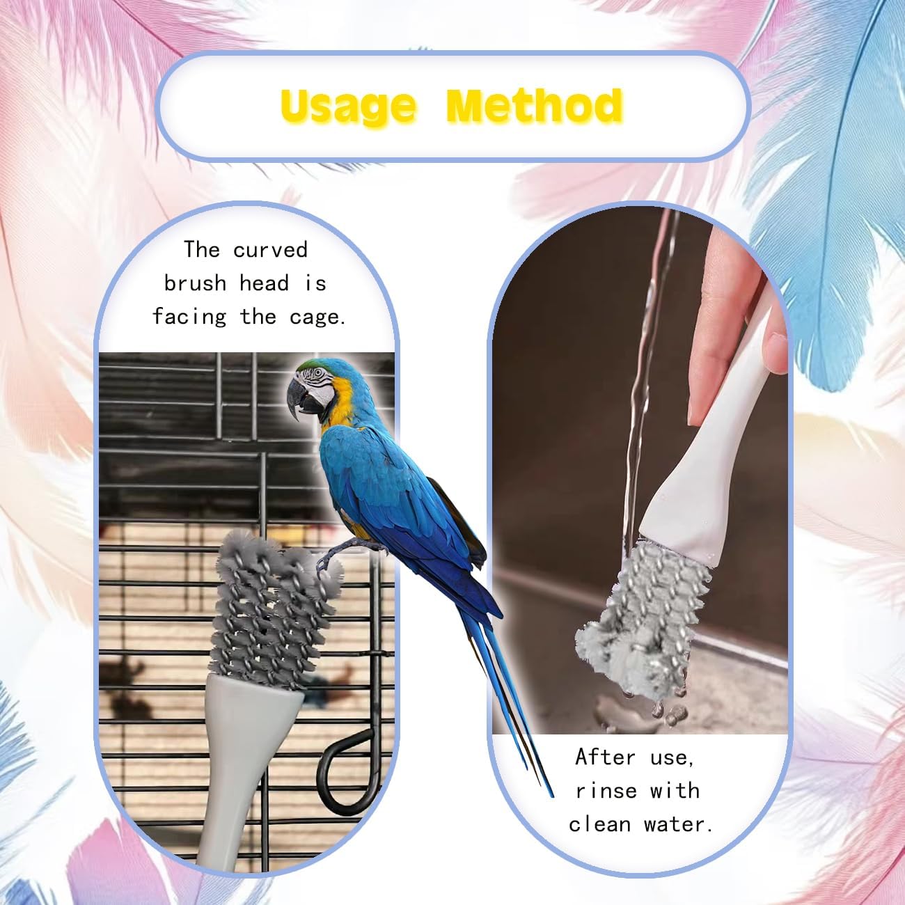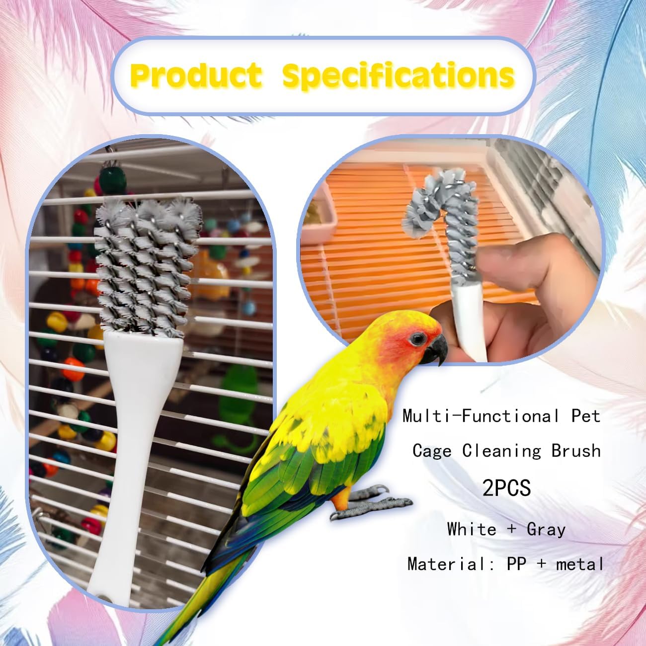 Keep your feathered friends healthy and happy with the Ultimate Bird Cage Cleaning Kit! Designed by pet lovers, this 2-in-1 tool combines a stiff-bristle brush, scraper, and ergonomic handle to tackle every cleaning challenge. – Why Choose Us? – Deep Cleaning Power: The curved brush head and reverse bristles penetrate narrow gaps between cage wires, while the scraper effortlessly removes dried-on messes. – Durability You Can Trust: Made from rust-resistant stainless steel and reinforced nylon, this cleaning brush withstands daily use. – Pet-Safe Hygiene: Regular cleaning reduces odors, creating a safer environment for parrots, parakeets, and other birds. – Versatile & User-Friendly Use it for bird perches, toys, nests, or even household surfaces. The 18-inch handle provides extended reach for large aviaries, and the lightweight design minimizes hand fatigue.