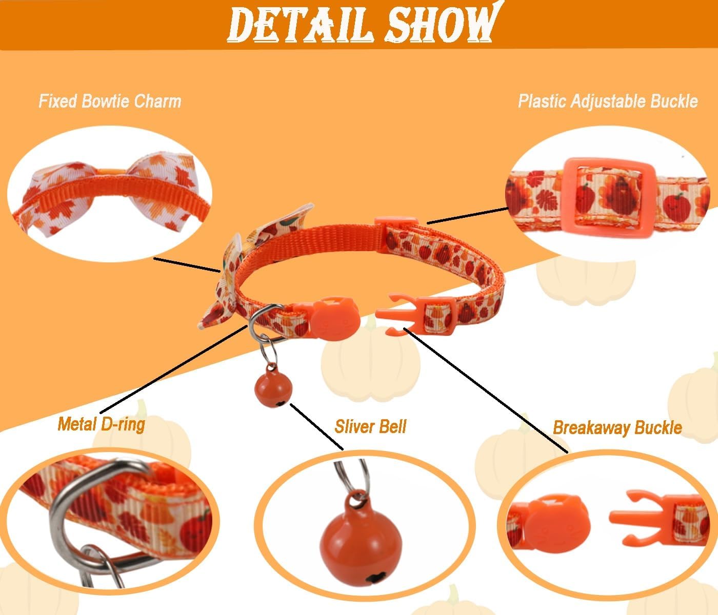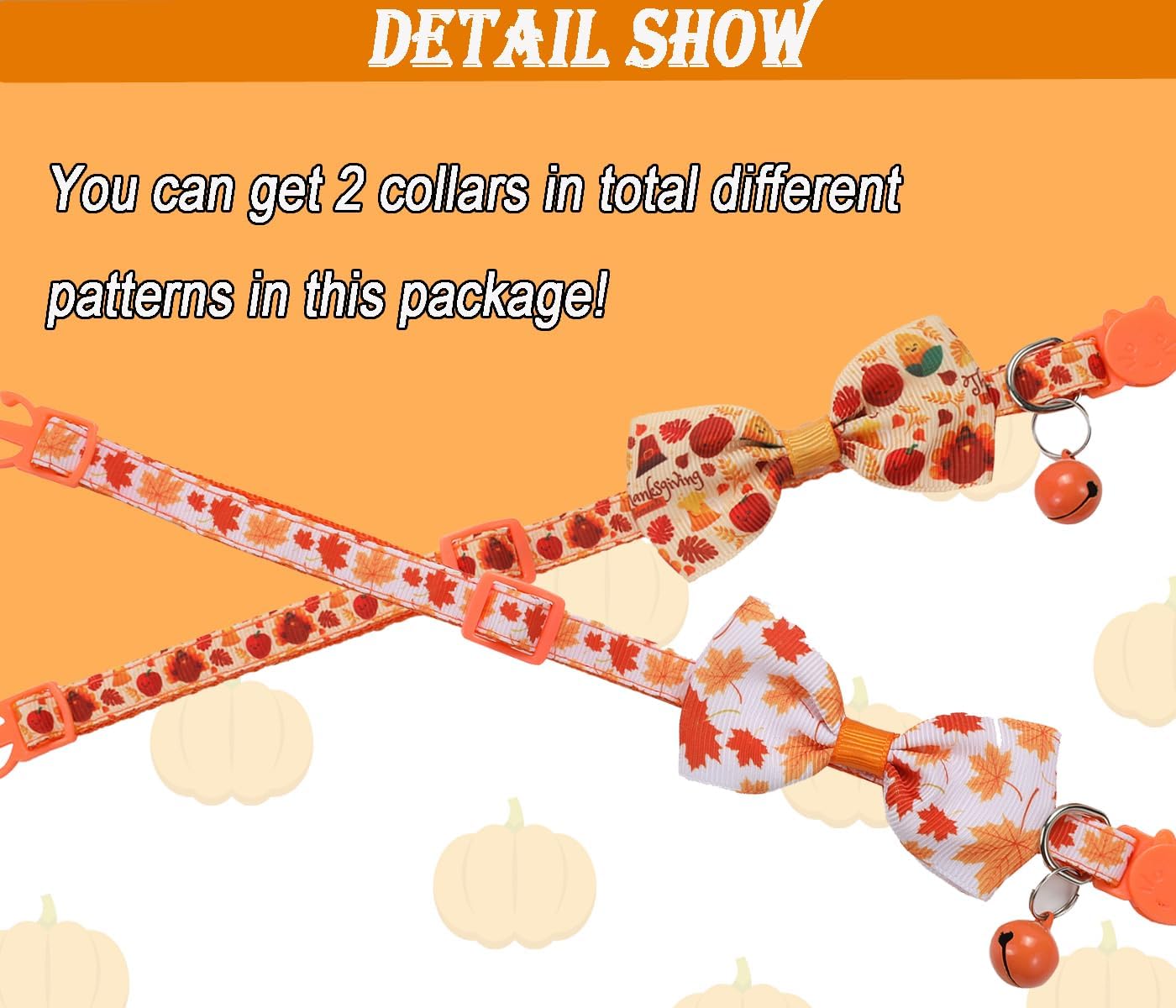 8 reviews for 2 Pack Fall Cat Bowtie Collar with Bell, Thanksgivng Holiday Kitty Kitten Collars for Boys Girls Males Female Cats