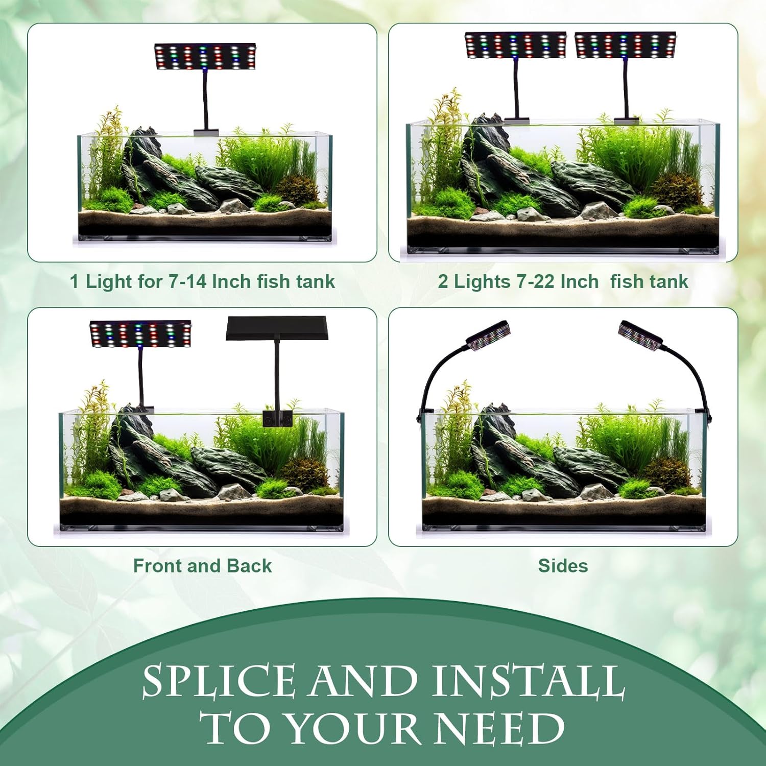 Splice and Install to Your Need: every aquarium is unique, and so should be its light; Our aquarium plant light gives you the freedom to combine (splice) as per your need, creating a bespoke lighting experience that is truly individual, suitable for 7-22 inch fish tank