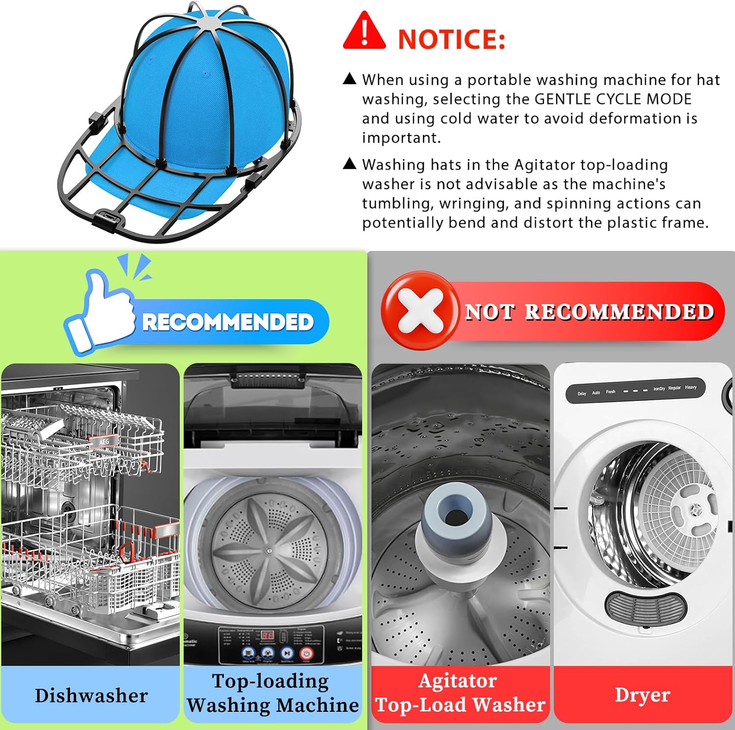 Fododo Hat Washer Cage for Washing Machine, Hat Cleaner for Baseball Caps Washing Cage for Hats Kids and Adults