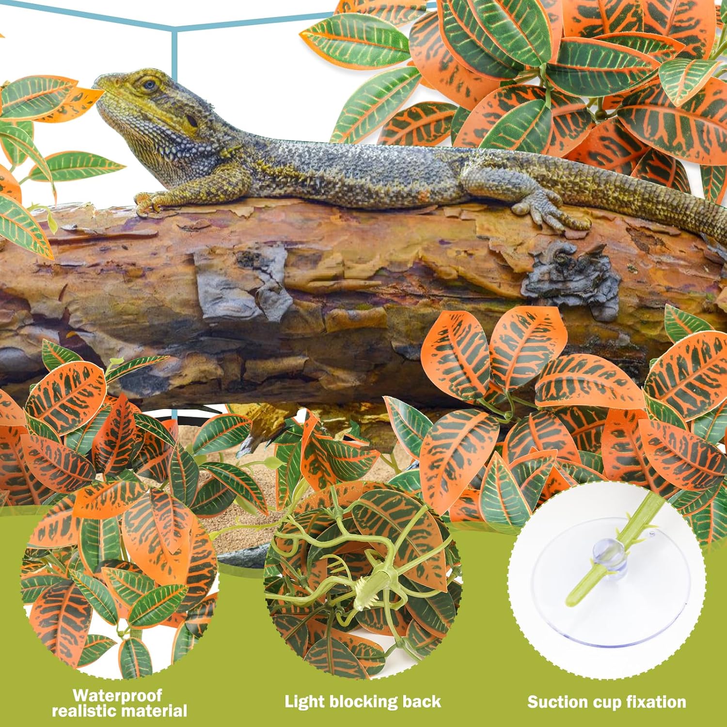 Artificial Leaves Habitat Decorations: Made with non-toxic plastic and soft silk leaves, clear texture and bright color, creates a fun & dynamic hiding spot and climbing for reptile amphibians.