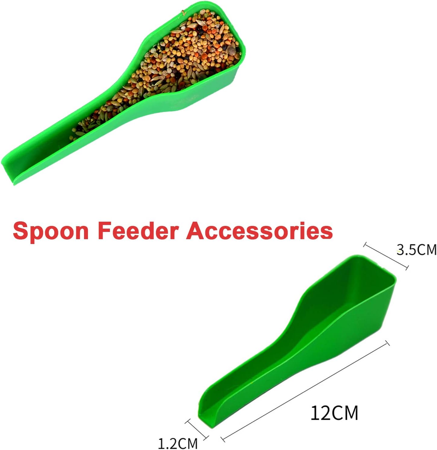 EASY REFILLING: Top large opening allows for convenient refilling. With a door panel to cover the opening to keep pet food away from dust and bugs. The feeder made of quality acrylic material is durable. Transparent texture 400ml big capacity storage pellets container allows you to monitor food levels and refill in time. The hamster automatic feeder size: 5 x 2.8 x 5.5inch (12.7 x 7 x 14cm). The spoon size: 4.7 x 1.4 x 0.5inch (12 x 3.5 x 1.2cm).