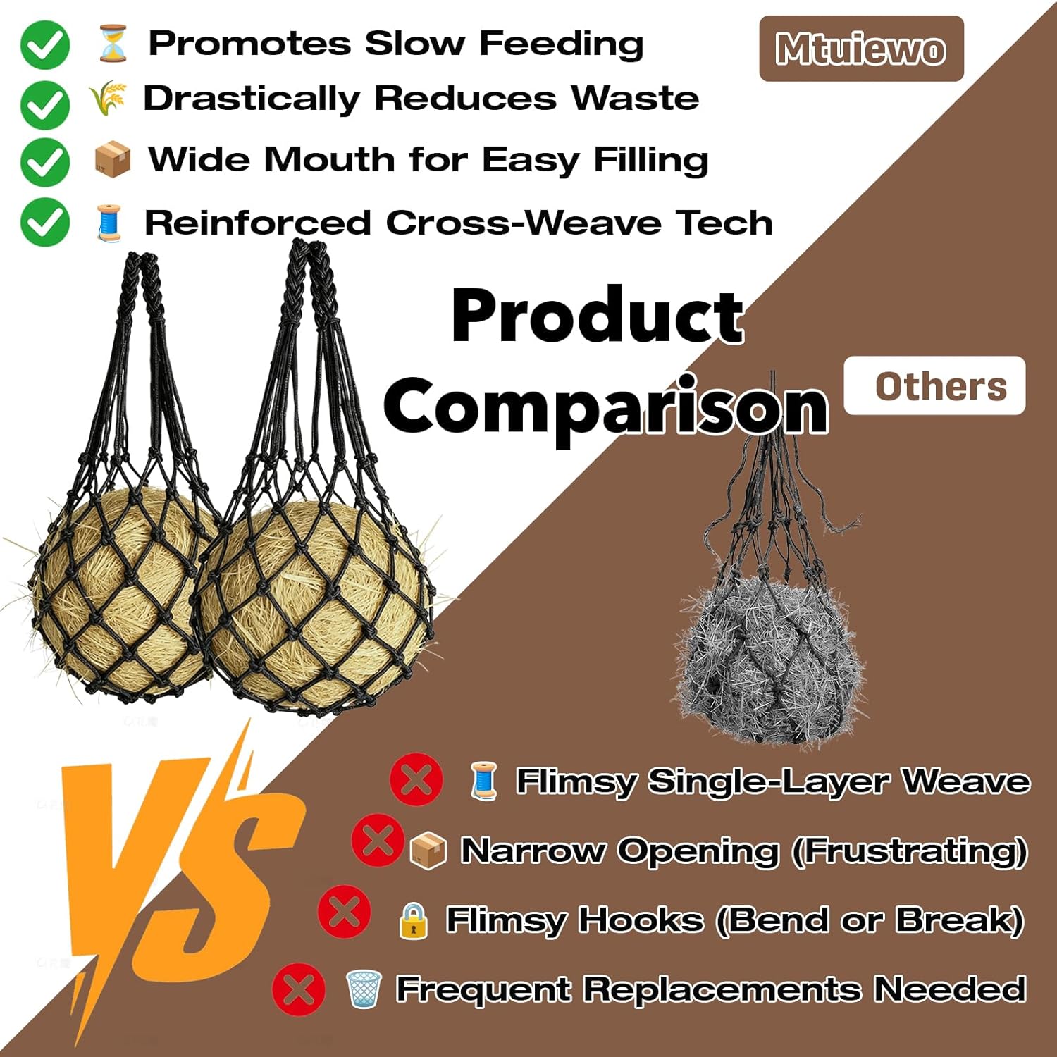 Easy to Clean & Compact Storage:Designed for quick rinsing and fast drying, this hay net maintains clean with minimal effort, its flexible structure allows for compact folding, making it ideal for storage