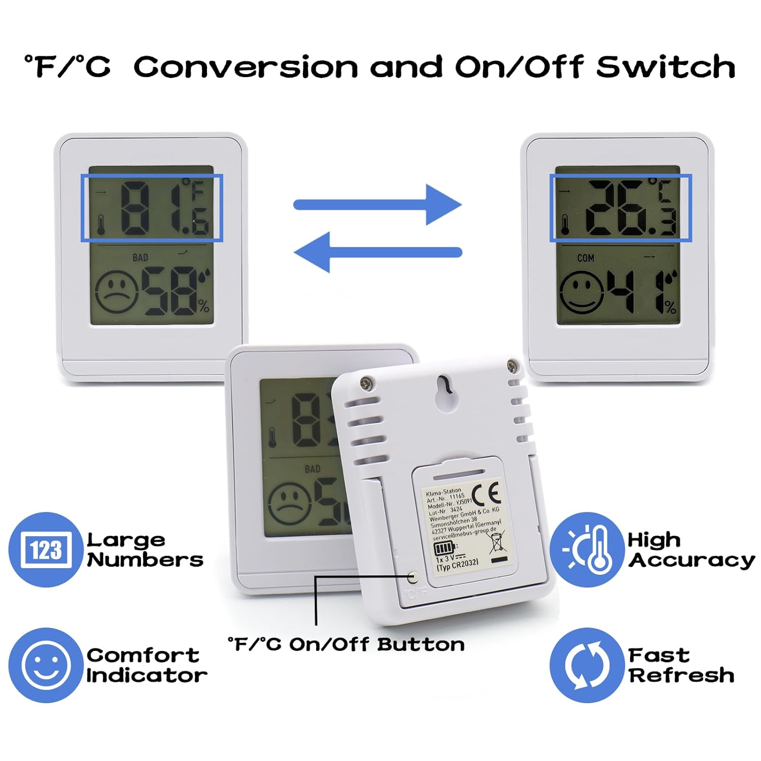 Easy to Read LCD Display: The thermometer for house features a 2.3in clear LCD display with large bold numbers, allowing you to read the digital from any angle. The hygrometer digital is lightweight, compact and easy to carry.