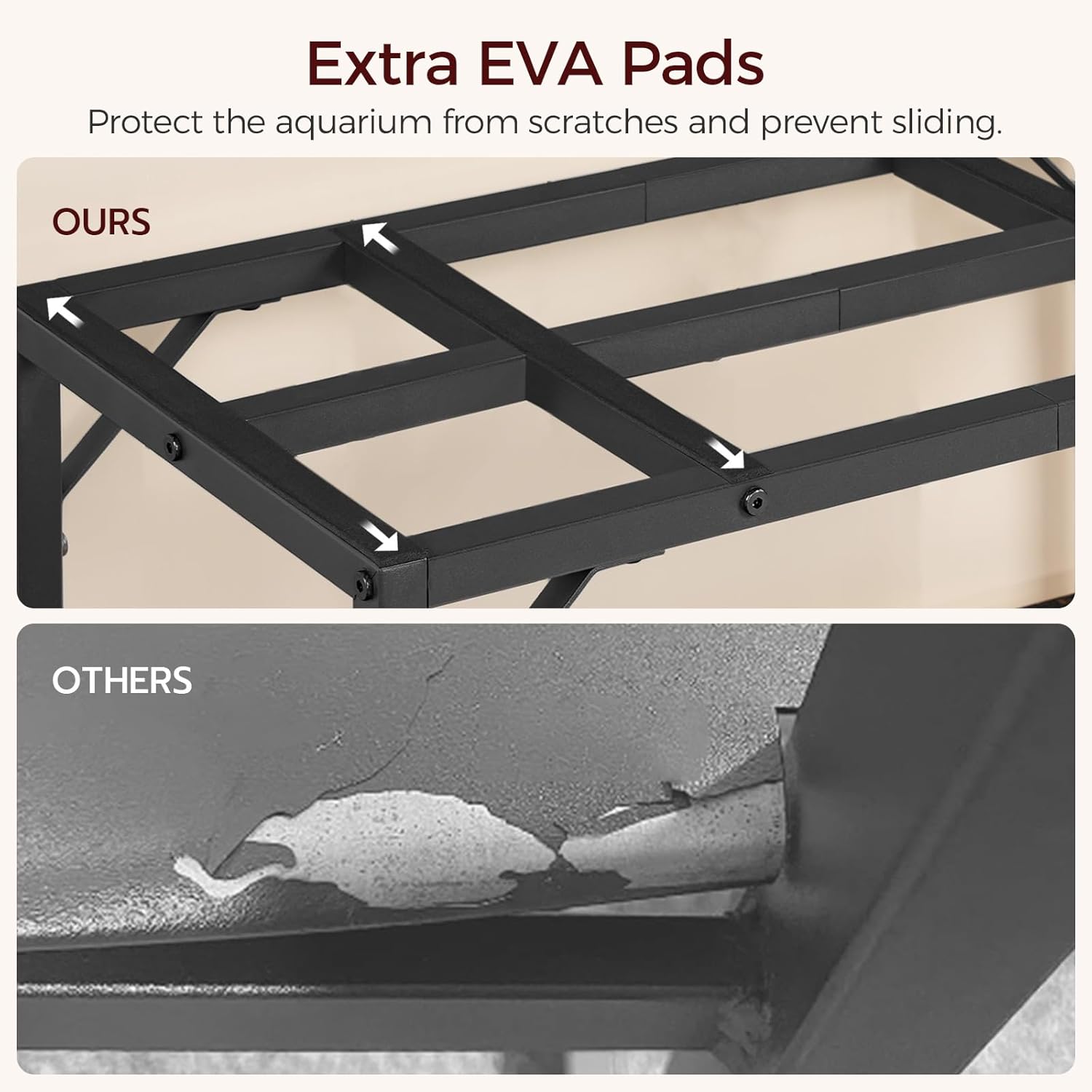 Sturdy Build: The 20 gallon fish tank is made of heavy-duty metal, with a top cross-frame for stability and corner triangles for extra strength. The top covered with EVA pads keeps your aquarium from slipping, making it a reliable choice to support your tank
