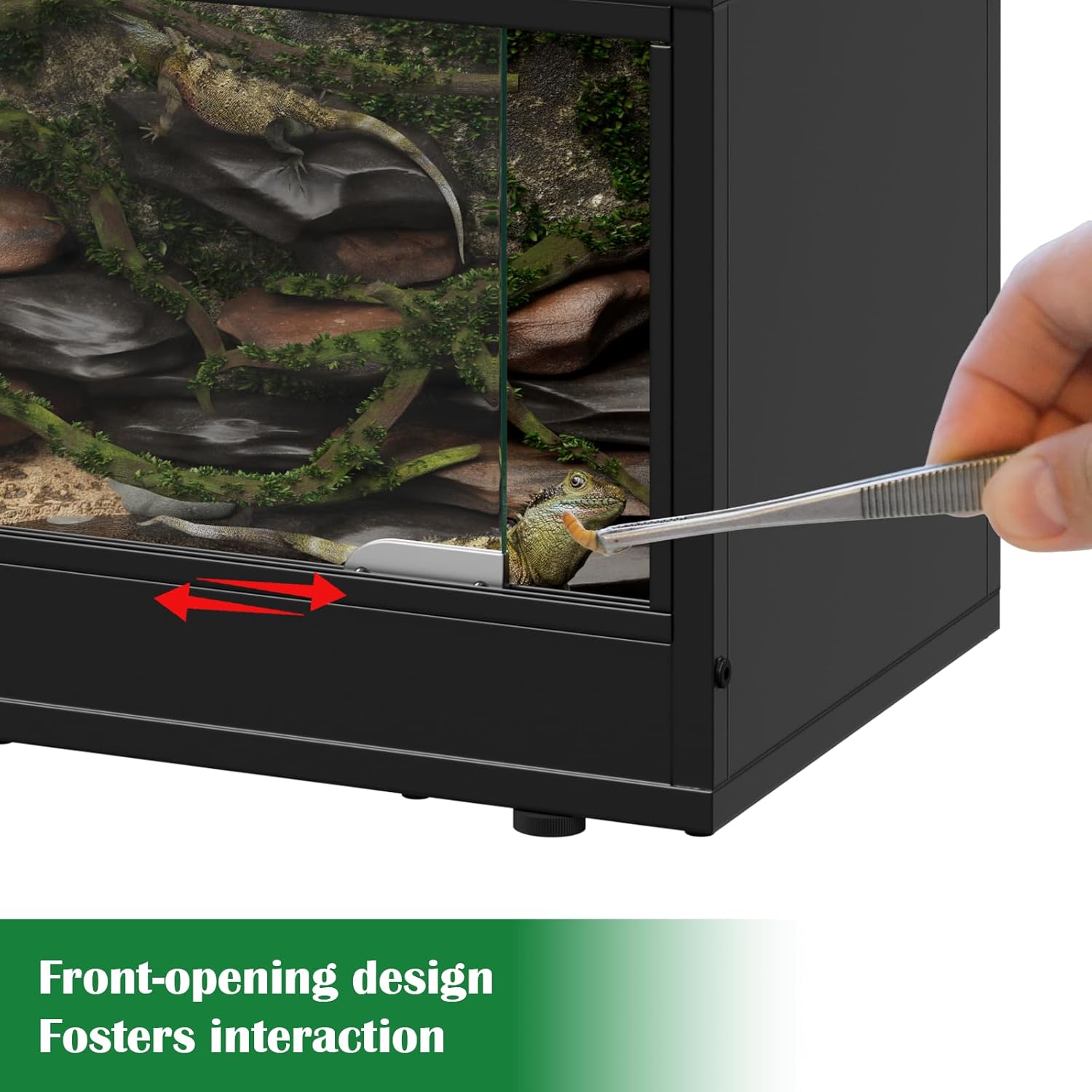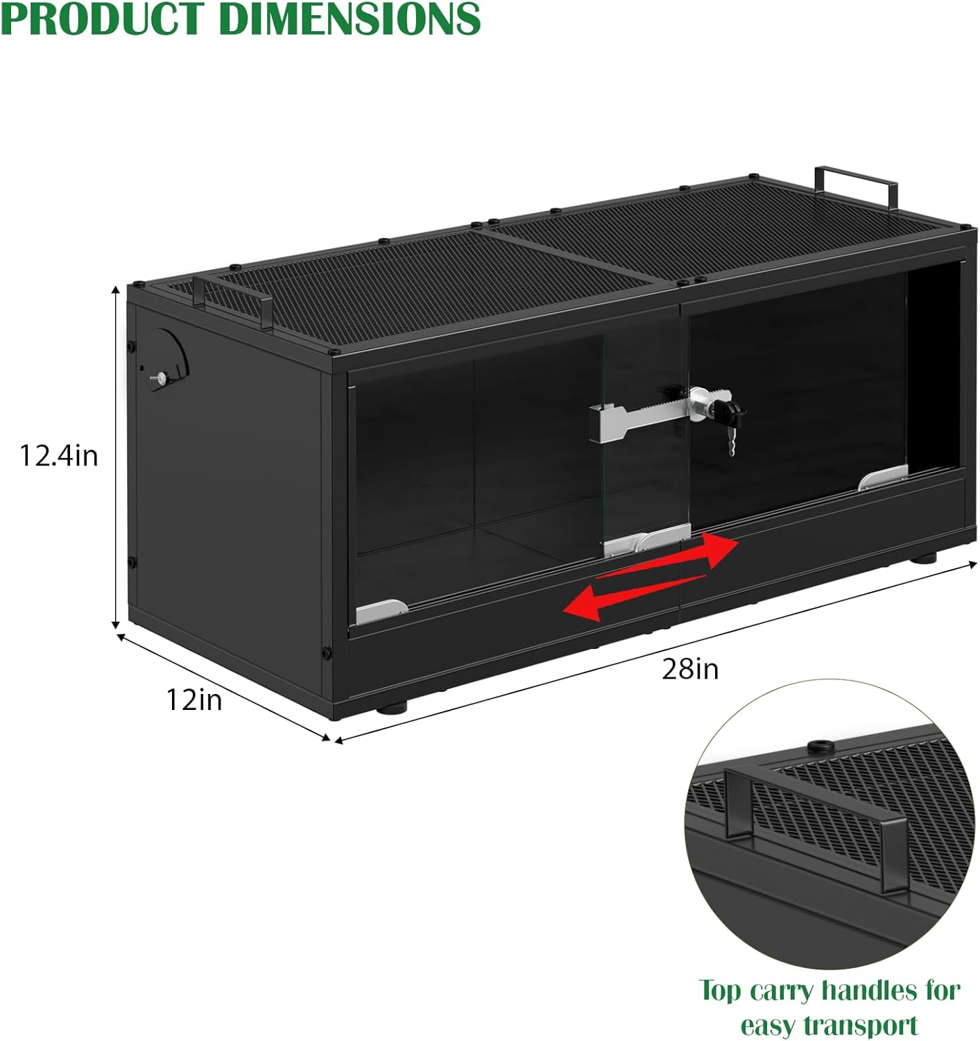 【All-Metal Secure Enclosure with Locking Glass Doors】Constructed with heavy-duty all-metal framework and features smooth sliding glass doors with a secure lockable clasp, this Reptile Cage ensures maximum security and prevents escapes—ideal for housing even the most aggressive pets with complete confidence.