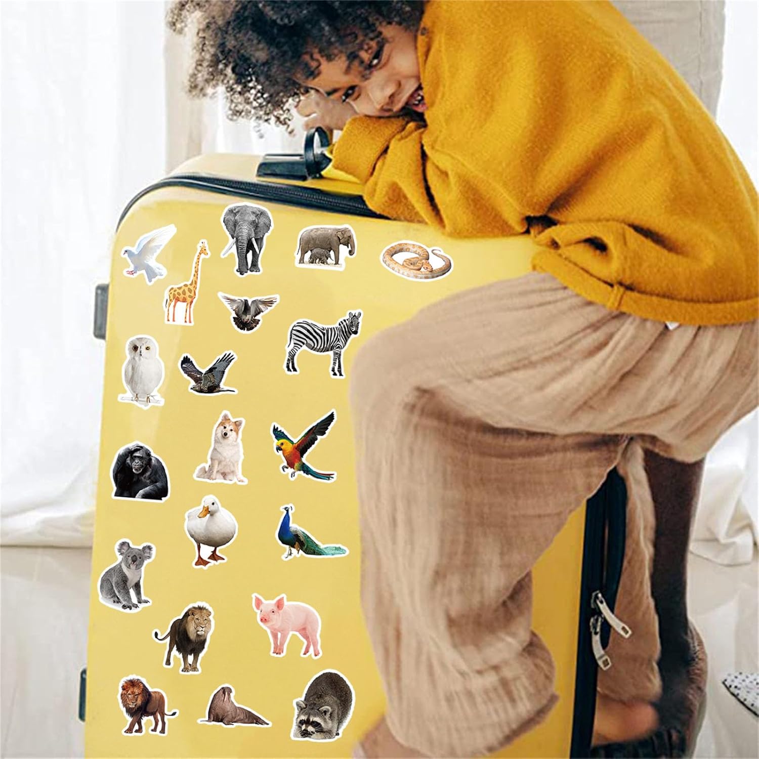 This is a nice assortment of various vinyl animal stickers. They are plainly packed, with four packs of 50 stickers. The stickers in each pack seem to be fairly random, except that there is one pack with stickers that are more illustrated/cartoon-like while the other three packs seem to be very realistic stickers (photo-like). There are a good variety of animals also, like pets, safari animals, wild animals, farm animals, etc. So if you or someone you know likes animals, this would be a nice set to get.Overall, I’m happy with this set and would recommend it if you are looking for a good set of animal-themed vinyl stickers.