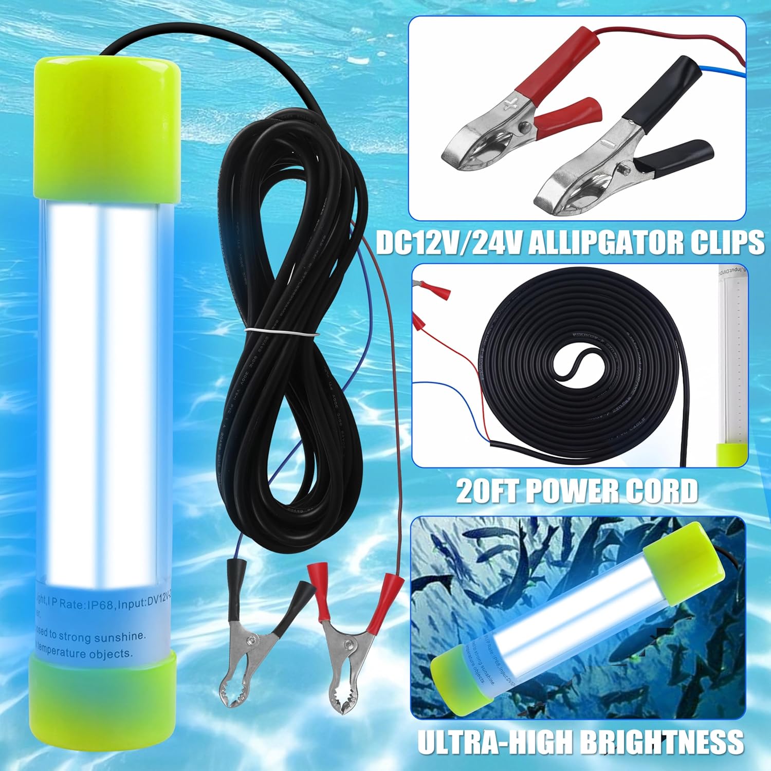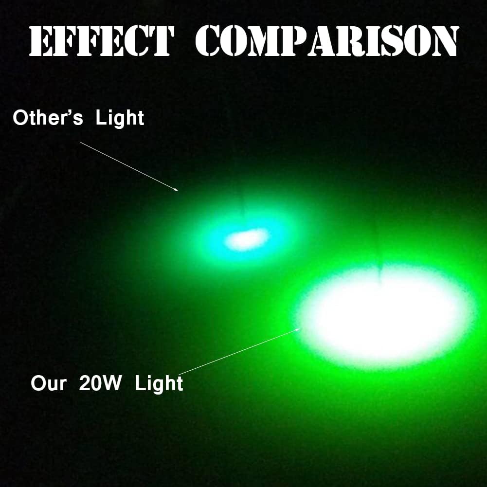【LOW CONSUMPTION】 Green fishing lights are energy efficient lights that consume less energy than old lighting systems and provide the same lighting effect. Up to 50,000 hours of continuous service. No added weight required (weight 23oz). Built in weight in the light. 7.6 inch light length with 20ft Power Cord