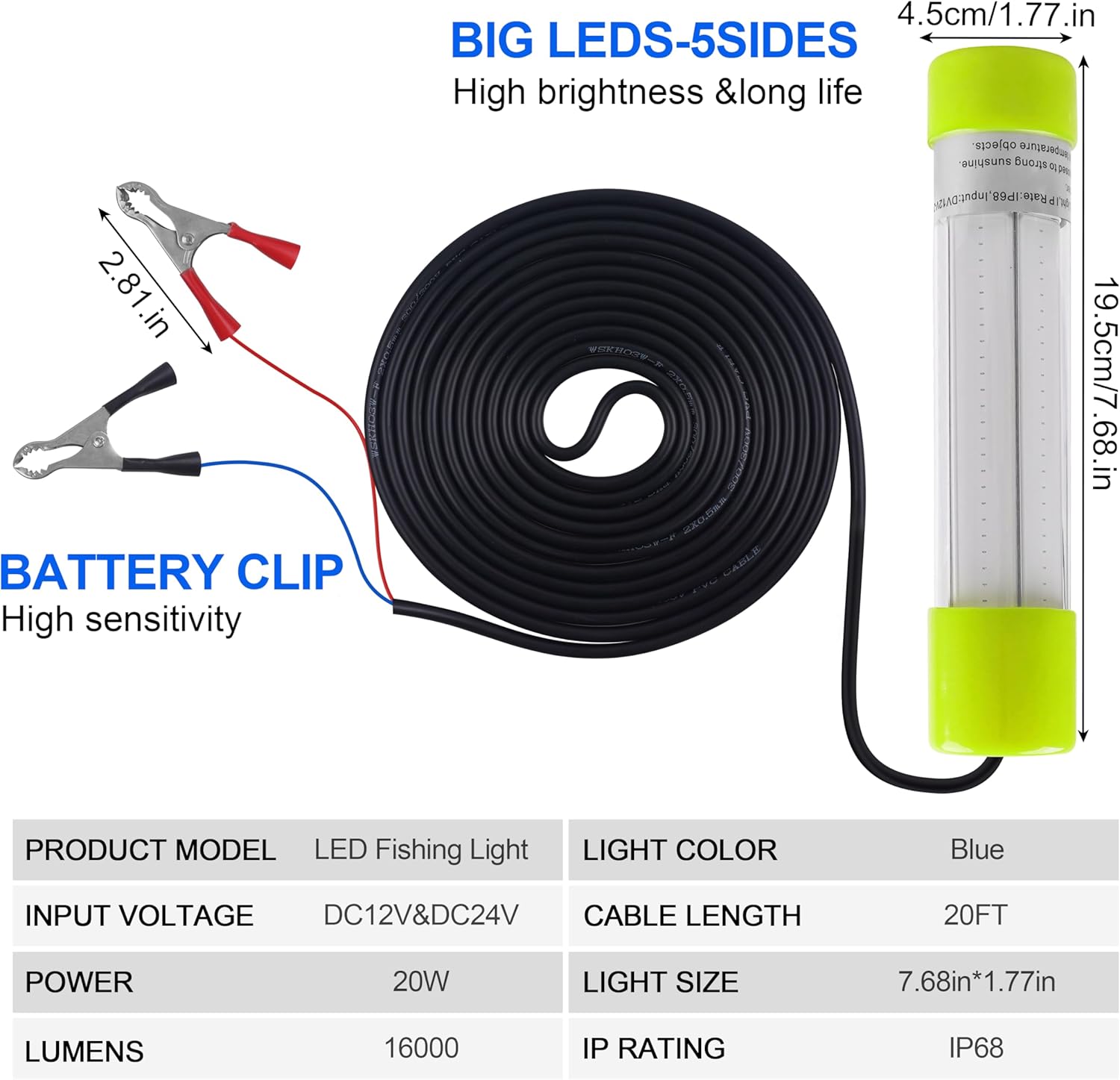 【Perfectly Waterproof】Underwater fishing light come with special waterproof sealants on the outside of the lamp instead of wrapping in a normal plastic case, superior IP68 waterproof ability will not fog up or got water inside when using. Suitable for fishing both in freshwater and saltwater