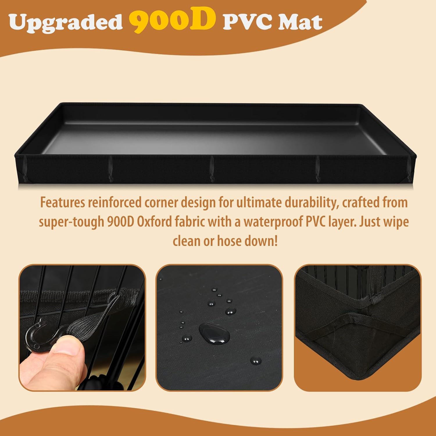 Upgraded Waterproof Floor Mat: 600D Oxford fabric + PVC lining protects floors, wipes clean instantly. Note: Install OUTSIDE the small animal playpen. Mat fits standard layouts only.