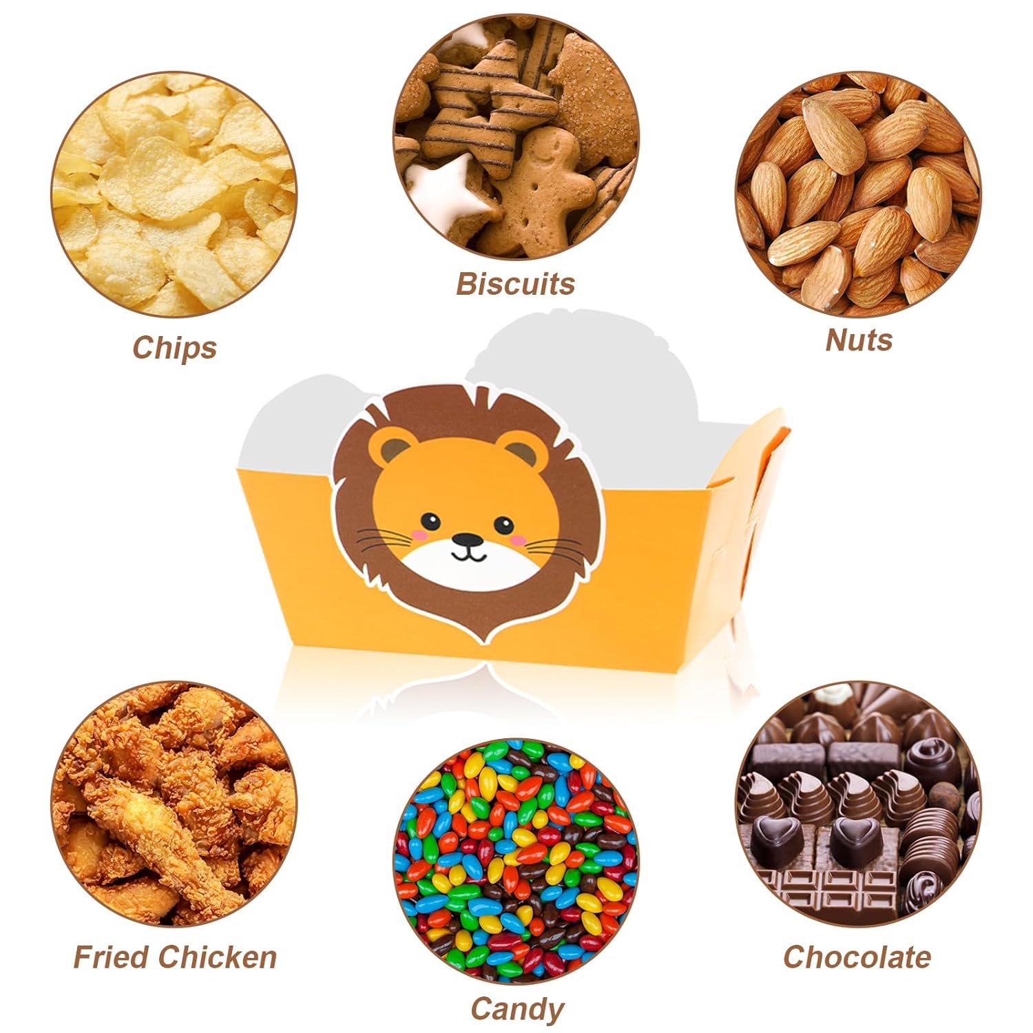 Convenient and easy to use: Measuring 4 x 2.8 x 2 inches (10 x 7 x 5 cm), these mini jungle safari party snack trays offer ample space for a variety of snacks, like burgers, fries, chocolate, candy, hot dogs and more. Their easy-to-assemble design means you can quickly set up and focus on enjoying your gathering without the hassle of complicated preparation.