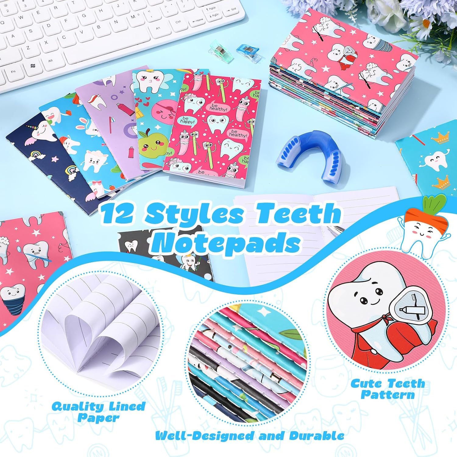 Generous Quantity: the package includes 24 teeth mini notepad, available in 12 different styles with 2 of each design; It offers you a variety of patterns, an abundant quantity of notebooks, to meet your needs for daily dental use or giving to others