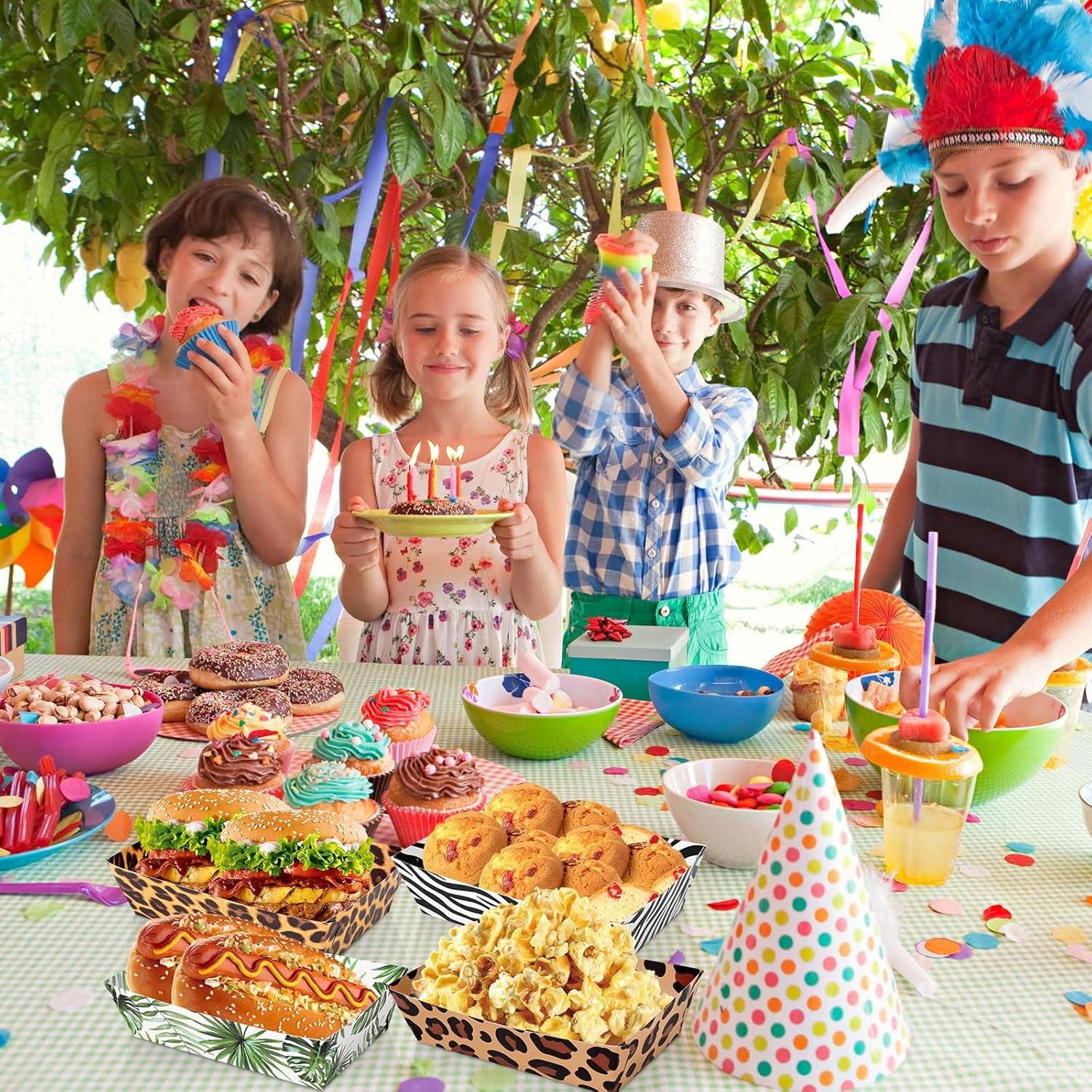 Quality Materials: Jungle animal hunting paper food trays are made of high-quality thicken paper, and the boat-shaped design allows you to enjoy your snacks without worrying about spills or oil stains. The thoughtful, disposable design saves you time and allows you to enjoy your snacks without having to spend time cleaning the tray.