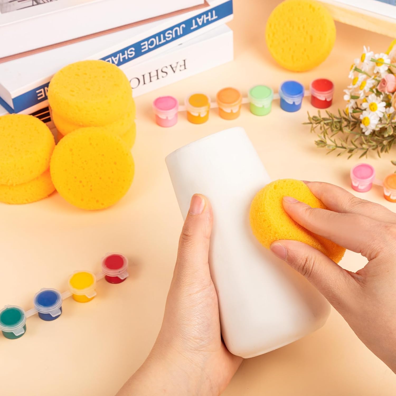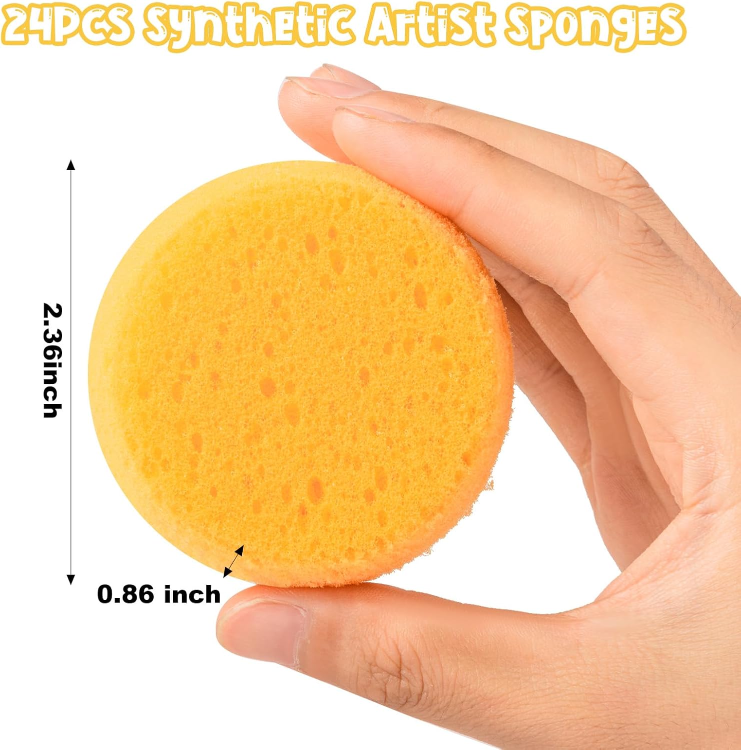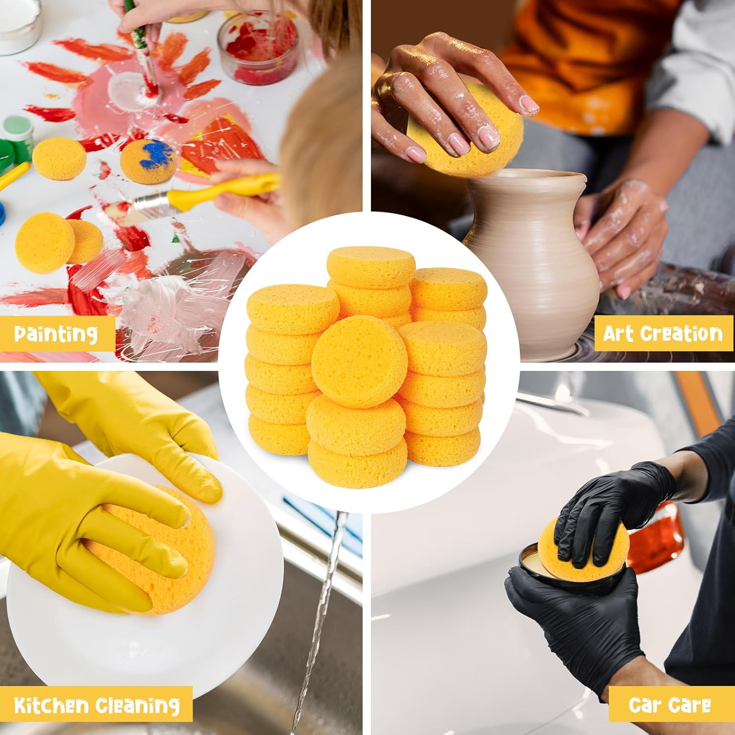 24Pcs Round Pottery Sponges, Round Artist Sponge, Pottery Sponges for Clay Leather Care Horse Tack Maintenance and Versatile Crafting