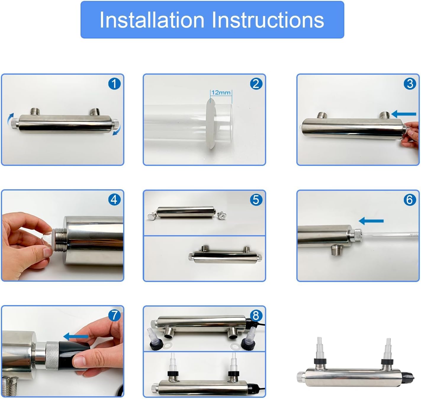 QUALITY ASSURANCE – Made from durable stainless steel, our U-V disinfection resists corrosion and requires minimal maintenance. The UV lamp has an 8000-hour lifespan, ensuring reliable, year-round use. If you have any questions, please contact us and we will respond within 24 hours.