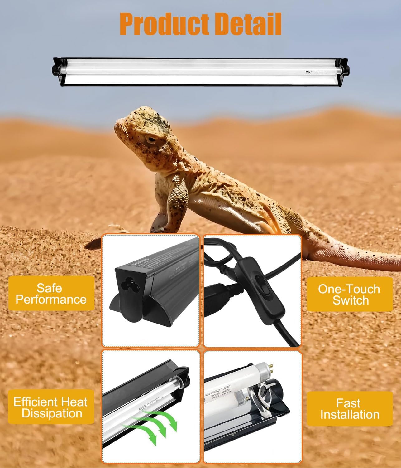 2 reviews for 24W T5 UVB Reptile Light Fixture Combo Kit – 10.0 UVB Fluorescent Tube for Bearded Dragons, Lizards & Tortoises – UVA UVB Reptile Light, 22″ Terrarium Hood (UVB 10.0-Desert, 22INCH-24W)
