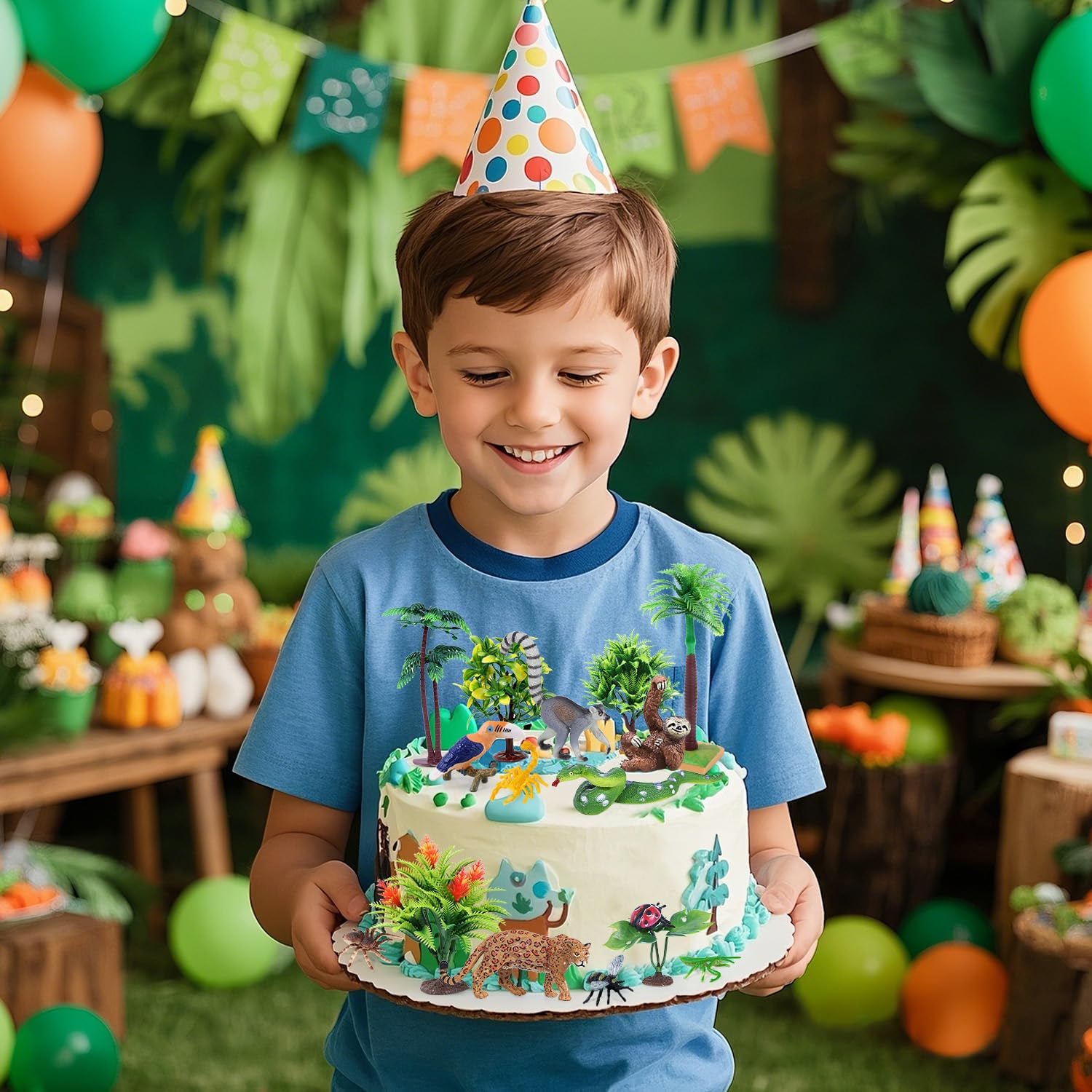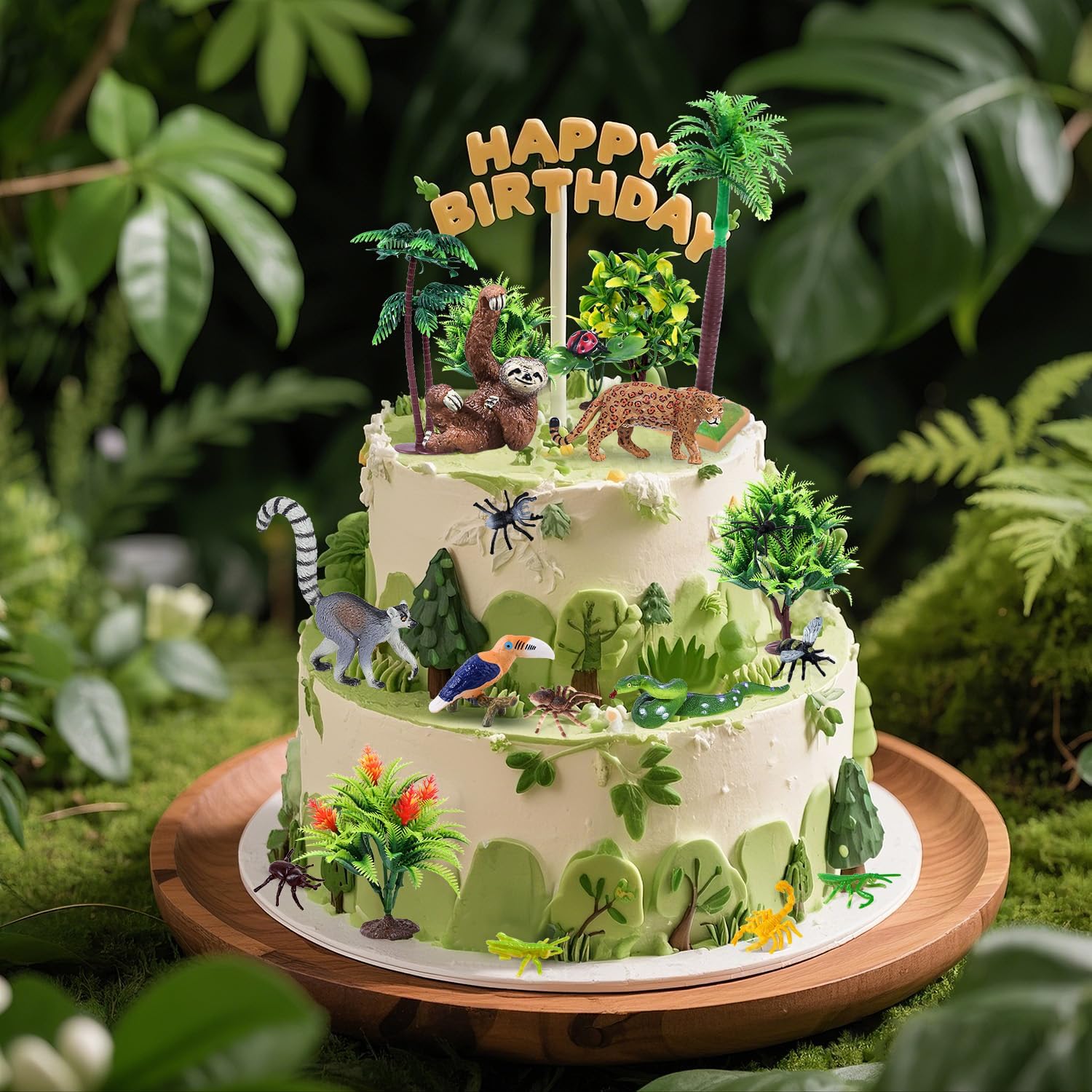 【Multi-Scenario Play & Decorations】- The rainforest animal figurines set is true-to-life detail, vivid colors and active poses, these models are designed for teachers, children, collectors. These animal figurines can not only be early education tools, perfect for jungle party favors, cake decorations.
