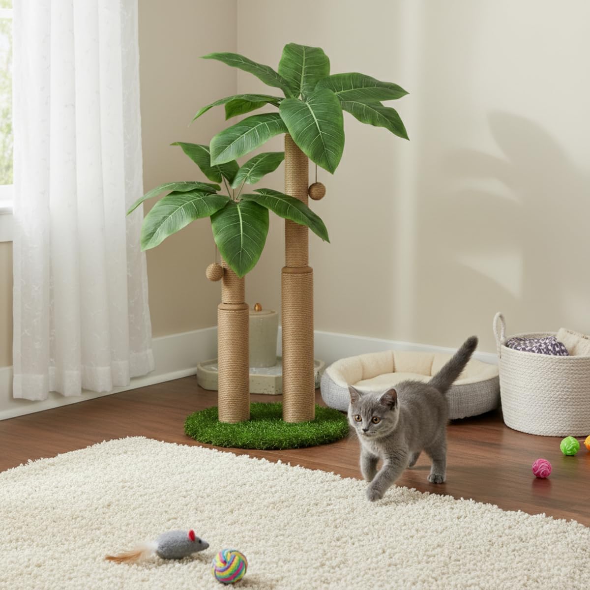 【Protects Your Furniture】: This artificial palm tree cat post prevent damage to your sofas and other furnishings by providing this scratching post as a satisfying outlet for your cat’s claws, keeping your home in great shape.