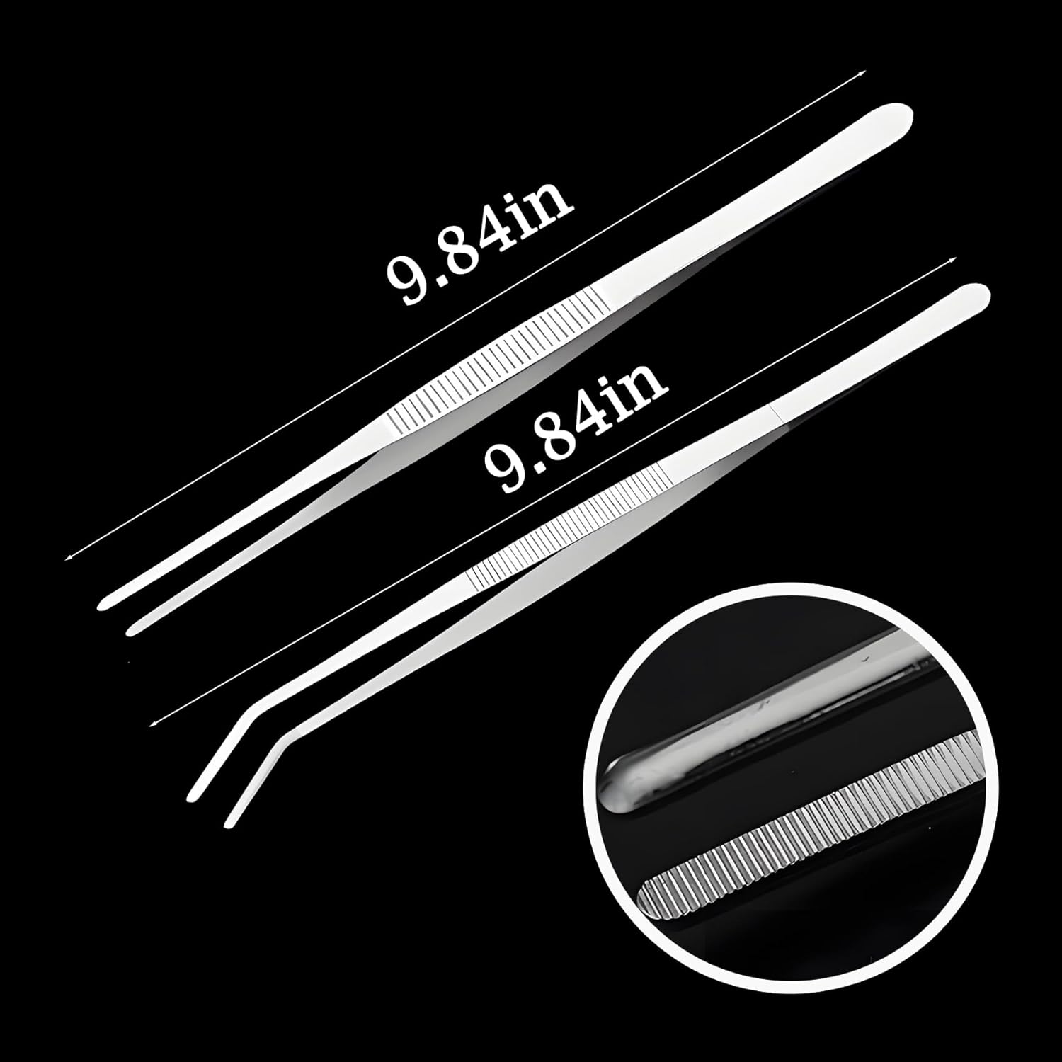 9.84″ straight and curved stainless steel aquarium tweezers, terrarium aquascape tools feeder for lizards, terrarium supplies.